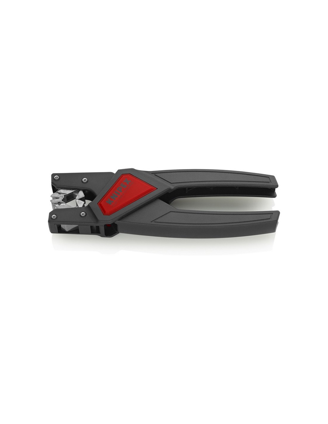 Alicate pelacables autoajustable cables planos KNIPEX 12 64 180 Para cables planos con aislamiento de PVC hasta anchura máx. 12 mm, y 0,75 hasta 2,5 mm2. Cuchillas acero templado. 180 mm. Cables 0,75-2,5 mm2.