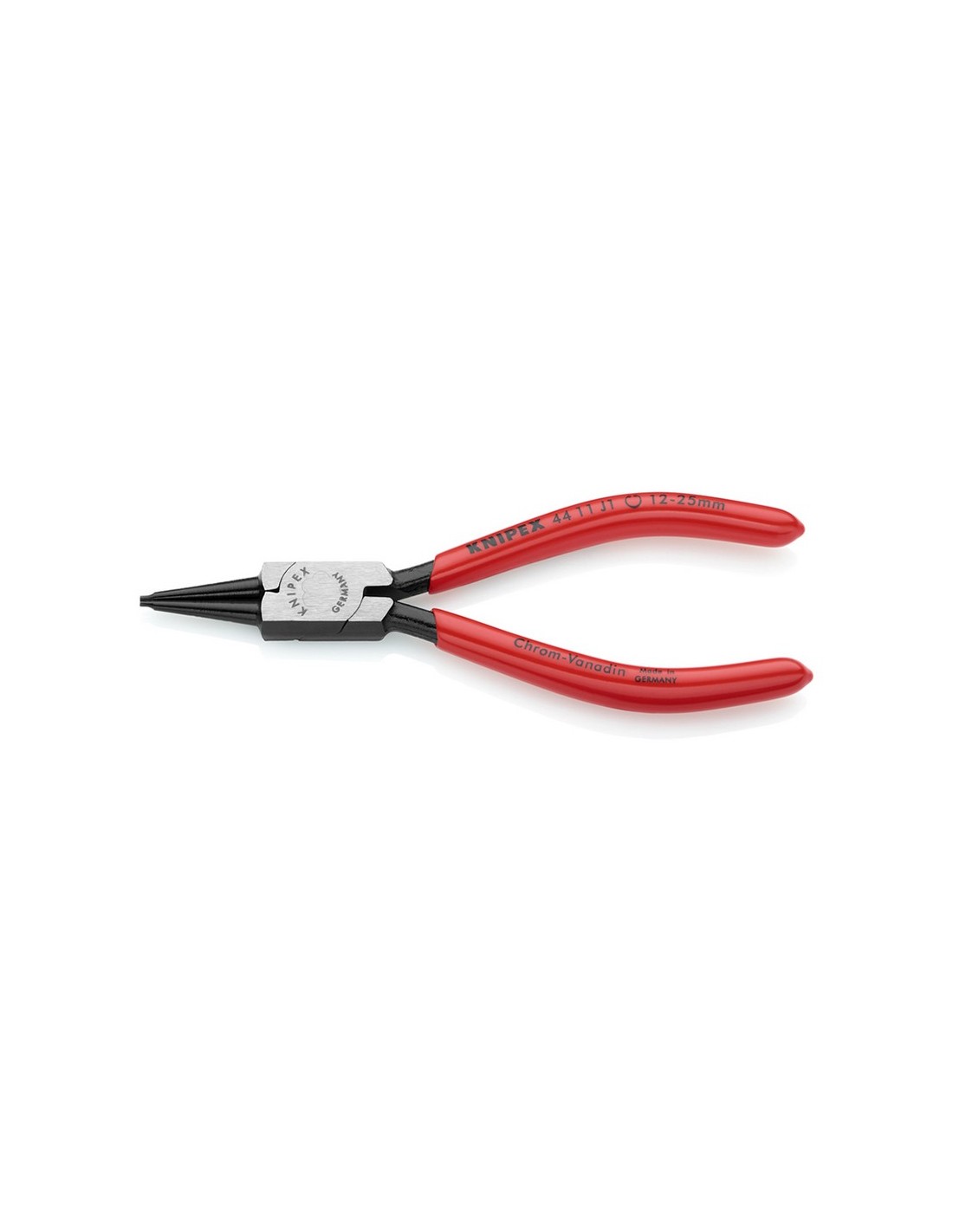 Alicate arandelas interiores puntas rectas KNIPEX 44 11 J Acero cromo-vanadio forjado. DIN 5256C puntas rectas. Puntas antideslizantes de gran estabilidad. Mangos recubiertos plástico. ø 12 - 25 mm. 140 mm.