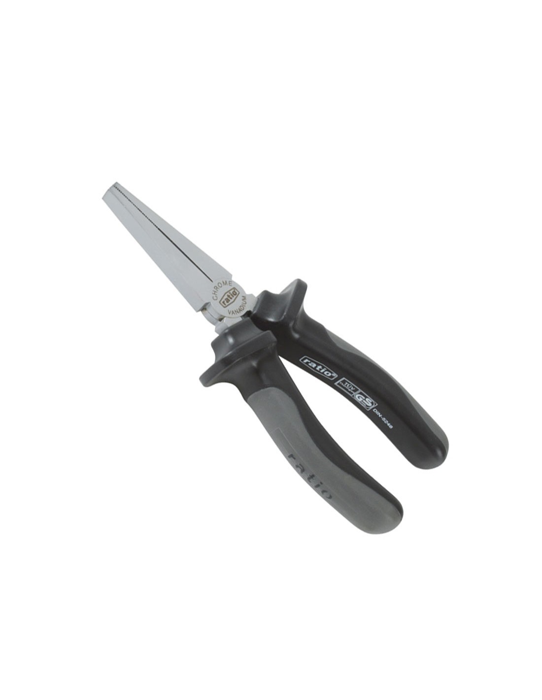 Alicates RATIO serie 6000 Acero cromo-vanadio satinado. Tratamiento de inducción en zonas de corte. Mango antideslizante bimaterial. Boca plana. 160 mm.