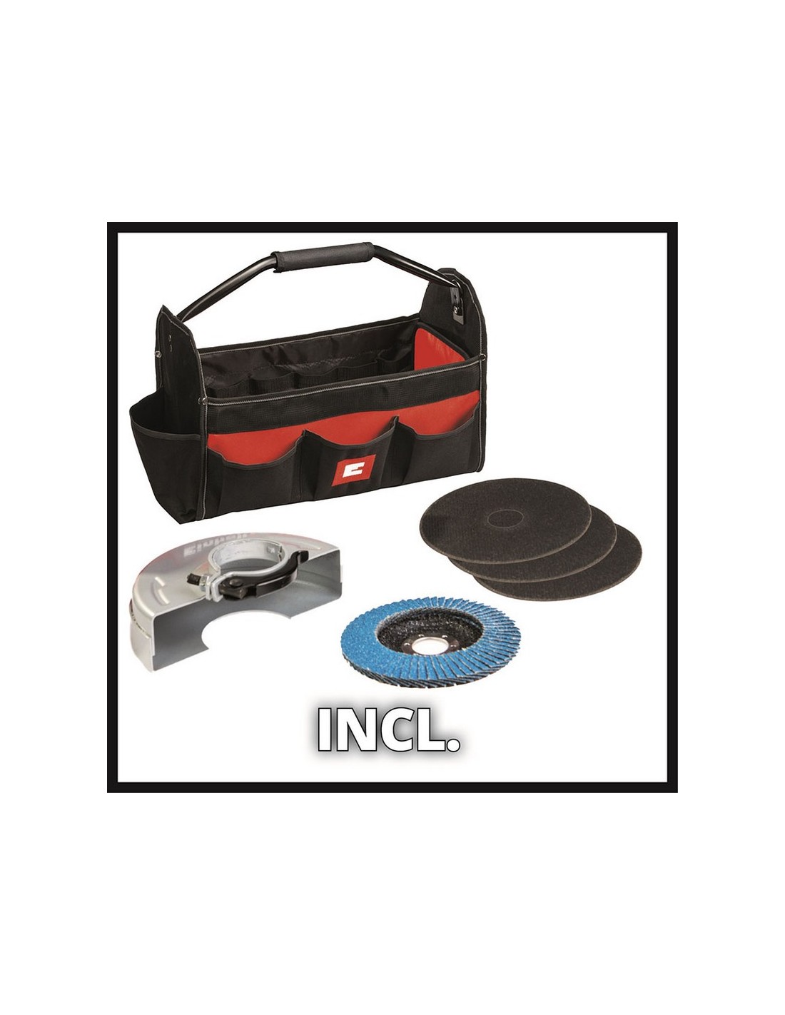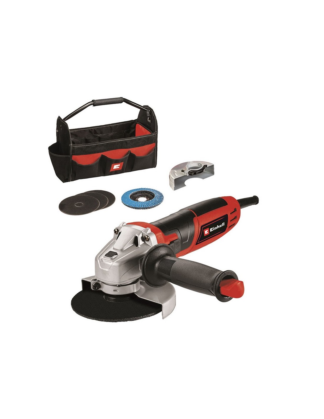 La amoladora EINHELL TE-AG 125/850 tiene una potencia de 850 W, está equipada de un cabezal de engranaje de aluminio robusto y de larga vida. De arranque suave para un manejo seguro y limitación de la corriente de arranque. La empuñadura principal junto con el asidero adicional, se puede montar en 2 posiciones, para un ajuste a la pieza de trabajo, garantizando una sujeción perfecta para un trabajo seguro y rápido. El cambio de disco es sencillo con bloqueo adicional del husillo por presión de botón. Además dispone de una superficie de apoyo práctica que permite depositar el aparato de forma segura mediante elevaciones especiales en la carcasa sin poder bascular lateralmente.