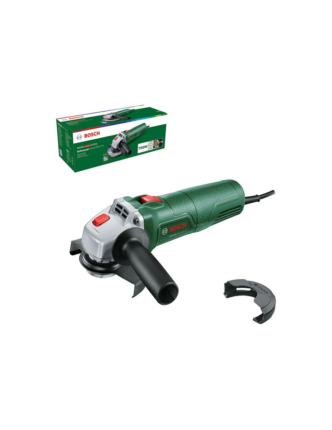 Amoladora ø 115 mm BOSCH Grind Robusto motor de 750 W para abordar tareas de bricolaje de tamaño mediano. Diseño ergonómico, carcasa delgada y bajo nivel de vibraciones para trabajar con comodidad. Sistema de protección de ajuste rápido para controlar las chispas durante el funcionamiento. Ideal para amolar, cortar y cepillar en metal, piedra, hormigón y azulejos. Potencia: 750 W.