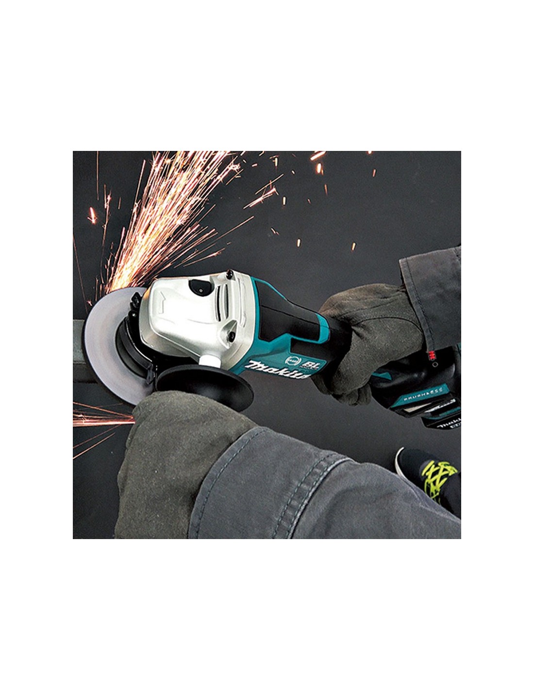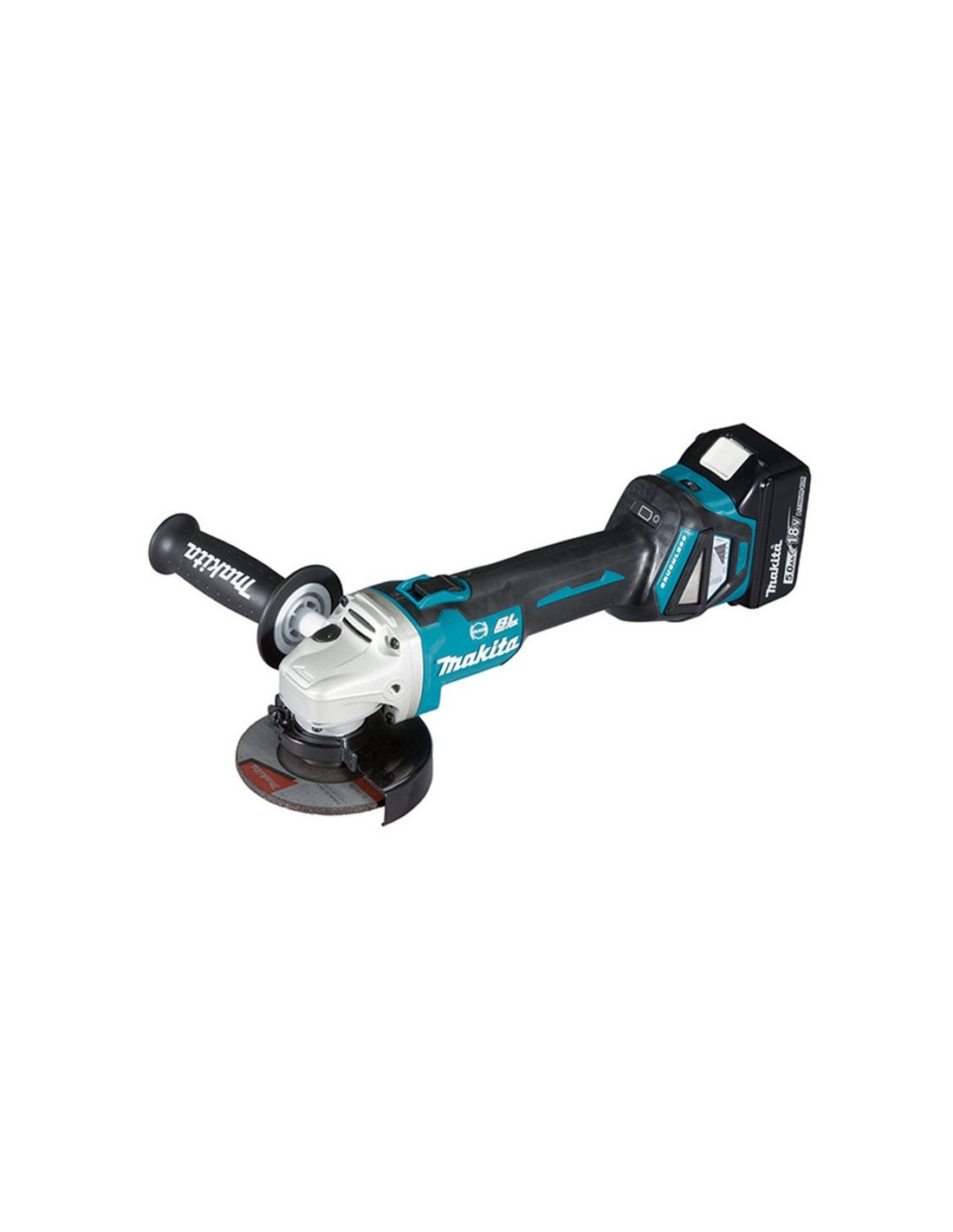 Miniamoladora batería ø 125 mm MAKITA DGA513RTJ 125 Sin escobillas. Freno eléctrico. Velocidad ajustable. Arranque suave. Recogida de polvo. Empuñadura lateral antivibractión ATV. Para uso profesional exigente. Incluye 2 baterías. Potencia: 18 V.