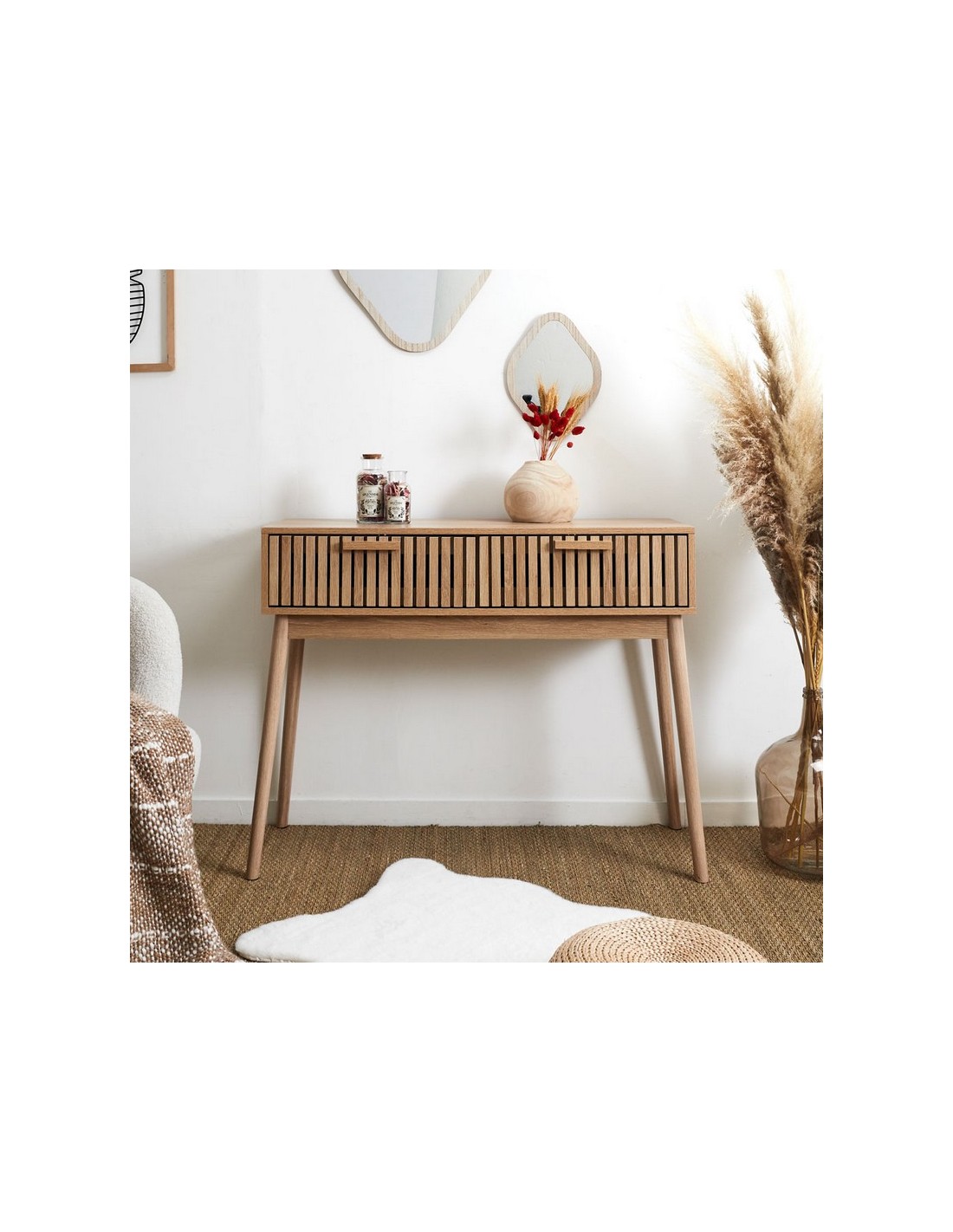 Mobiliario interior Klaus Madera MDF. Acabado natural. Se adapta a cualquier tipo de decoración. Consola. 100x35xh.80 cm.