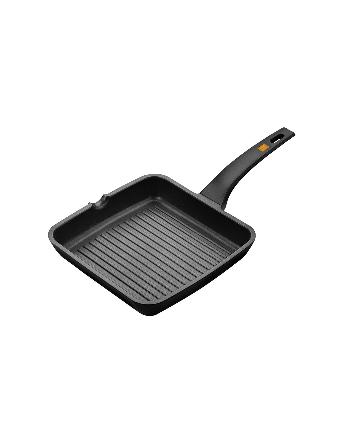 Sartenes y cacerolas BRA serie Efficient Aluminio fundido. 6 mm de espesor de base. Revestimiento tricapa antiadherente de Teflón Platinum Plus 100% libre PFOA. Cacerolas con tapa y asas de silicona termoresistentes y desmontables. Aptas para todo tipo de cocinas. Grill asador 28x28 cm.
