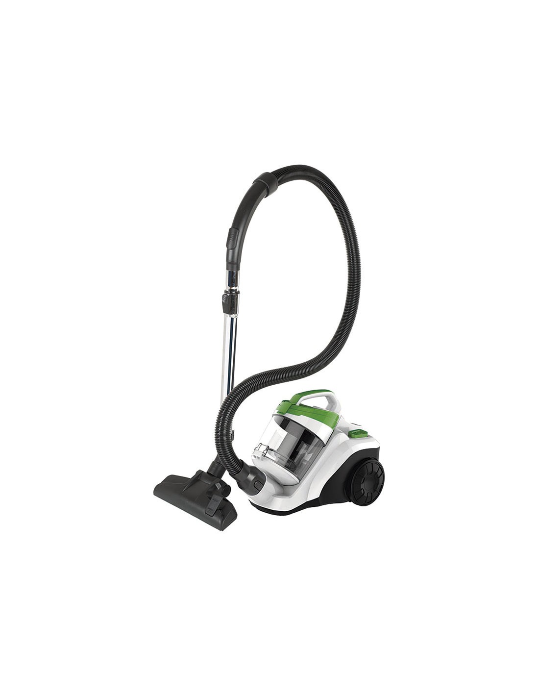 Aspirador ciclónico HABITEX HG92513L Sin bolsa. Indicador de depósito lleno. Filtro Hepa. Tubos metálicos telescópicos 48/78 cm. Manguera 1,5 m. Ruedas antideslizantes. Clasificación energética A. Boquilla 2en1: tapicerías + ranuras. Color blanco y verde. Potencia: 700 W.\r\nDepósito: 2,5 litros.\r\nNivel sonoro: 74 dB.\r\nCable 5 m. con recogecables automático.