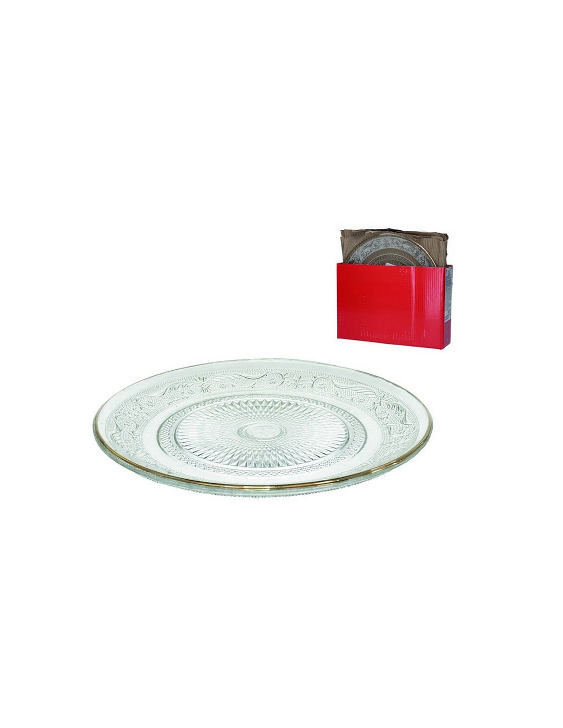 Vajilla cristal Kira con filo dorado Fabricada en vidrio grabado, con delicado filo dorado que su diseño la convierte en una pieza decorativa para la mesa. Fácil de limpiar y mantener, aporta un toque sofisticado a cualquier mesa. Está disponible en diferentes medidas. 25x2,5 cm.