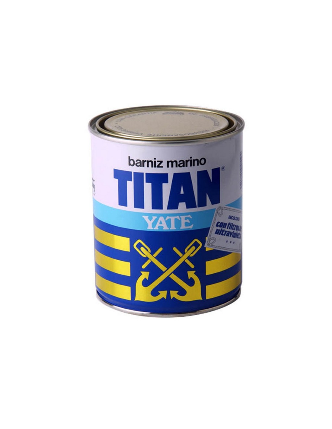 Barniz marino TITAN Yate Mayor resistencia en ambientes marinos y de agua dulce. Seca por oxidación. Duro y elástico, resistente al desgate. Gran retención de brillo. 750 ml. Brillante.