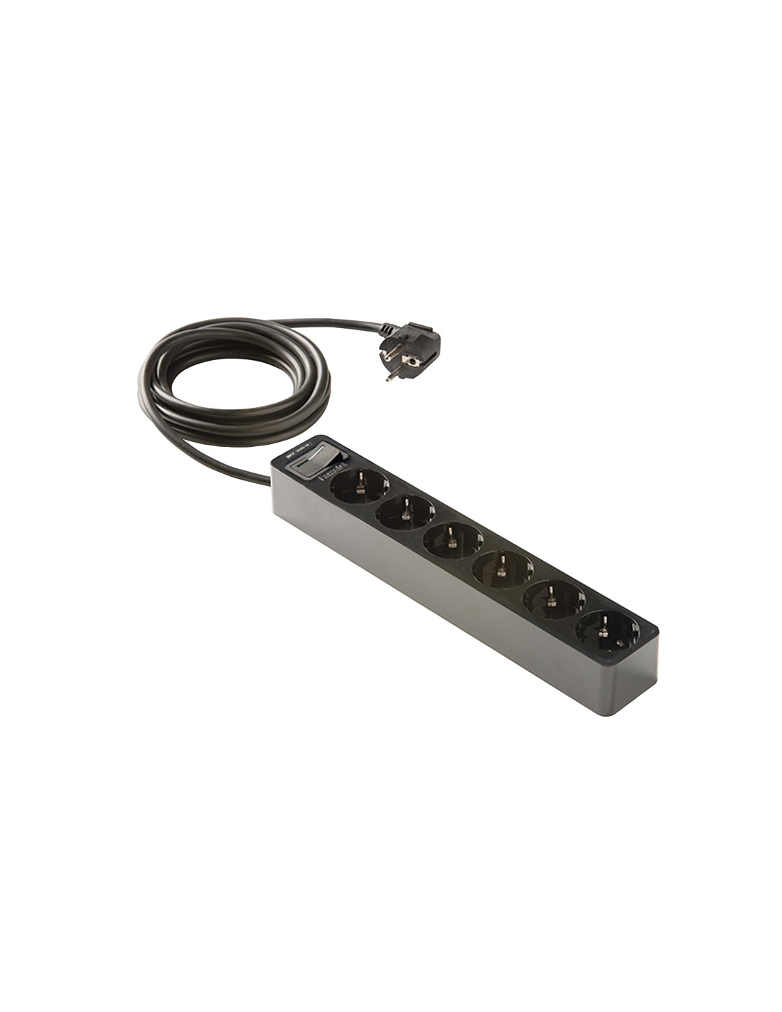 Base enchufe múltiple FAMATEL con cable Cable 1,5 m T/T lateral. 10/16 A. 250 V. Especial fijación a pared. Con interruptor. 6 tomas. Negro.