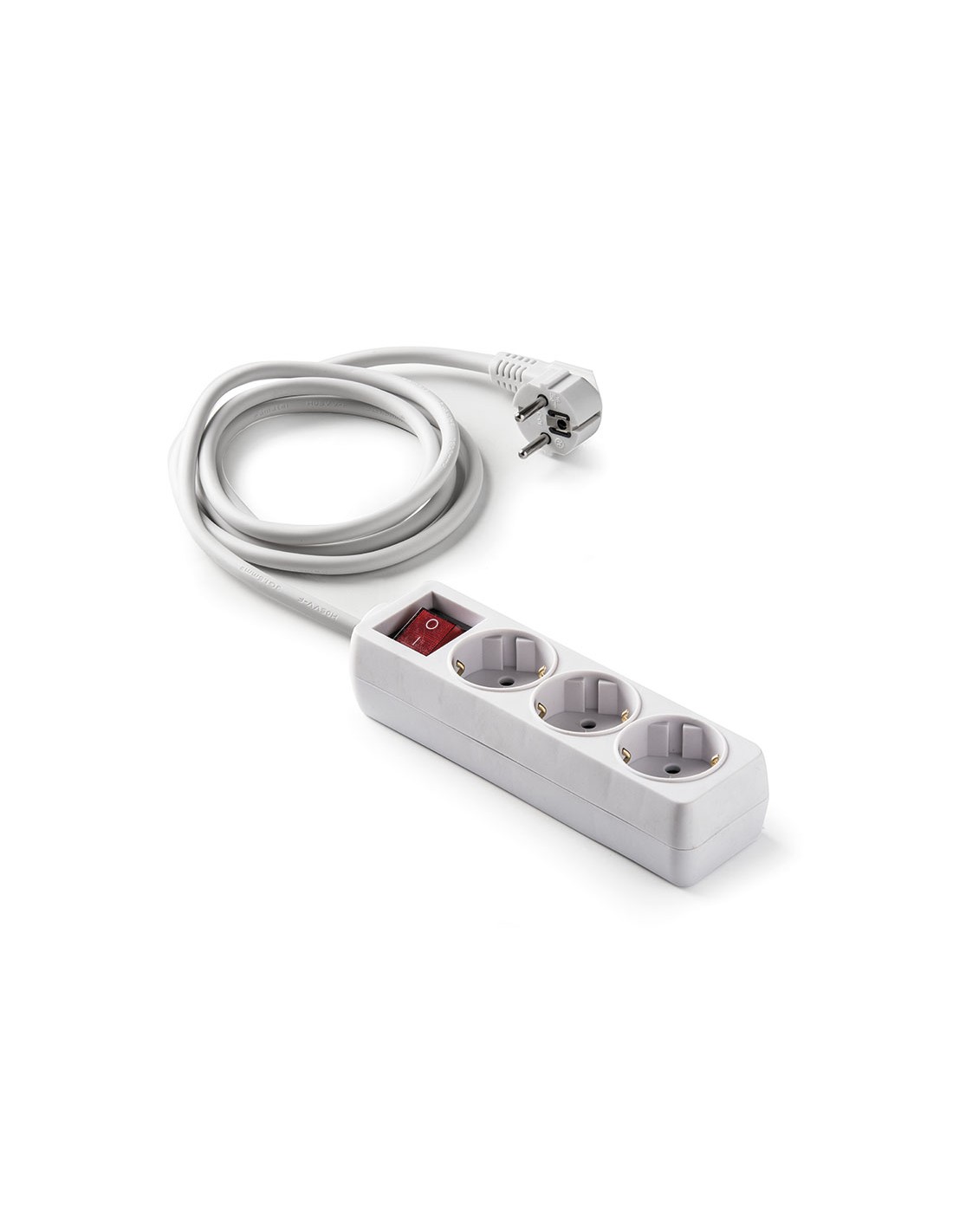 Base enchufe múltiple DUOLEC con cable T/T lateral. 16 A / 250 V. Con interruptor. 3 tomas. Blanco. Cable 1,5 m.