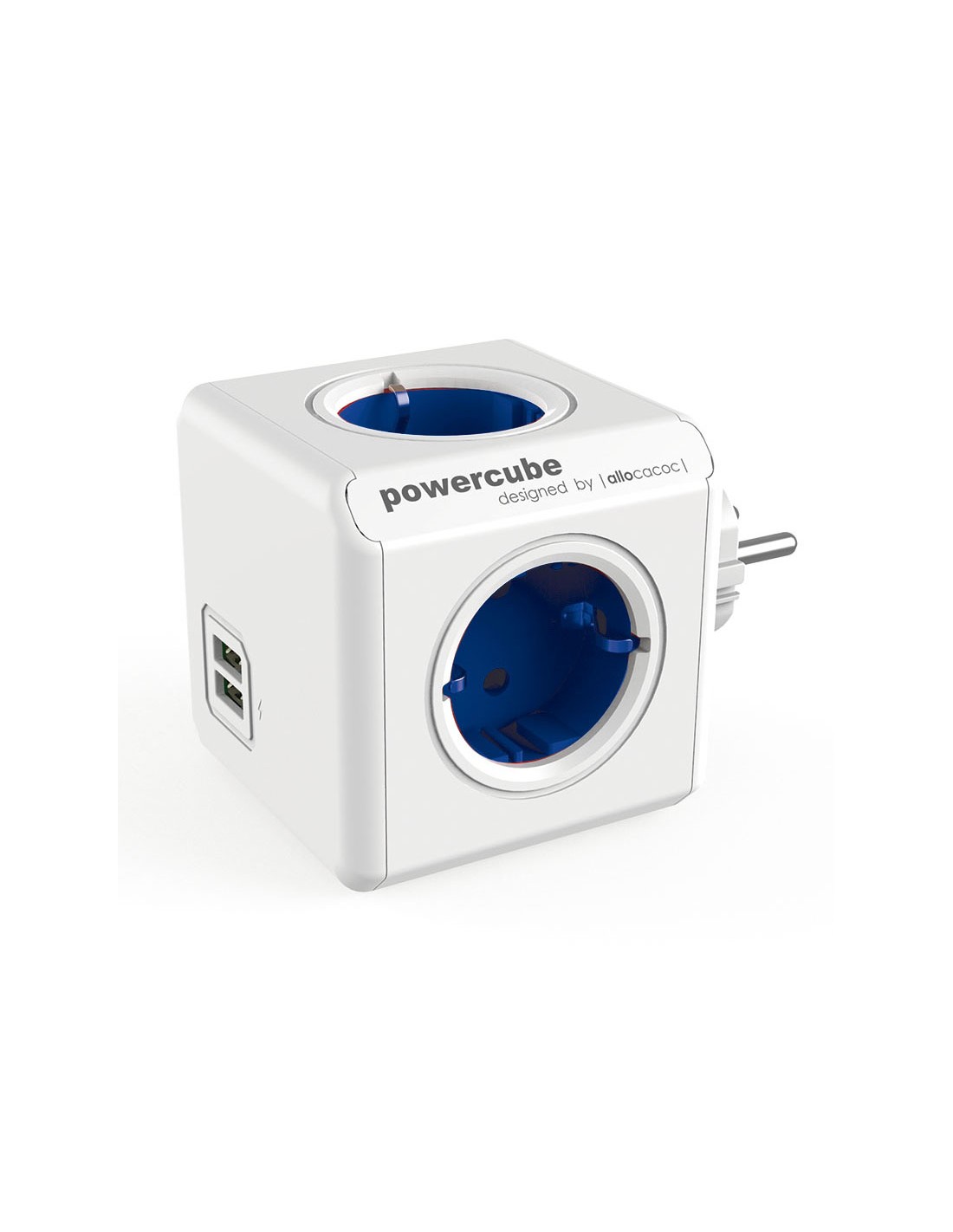 Base enchufe múltiple Powercube Original 230 V. Toma Schuko. Conecta todos tus dispositivos a un solo enchufe. 230 V. Toma Schuko. colores a elegir según modelos.. 4 tomas corriente + 2 USB (5 V). Color azul.
