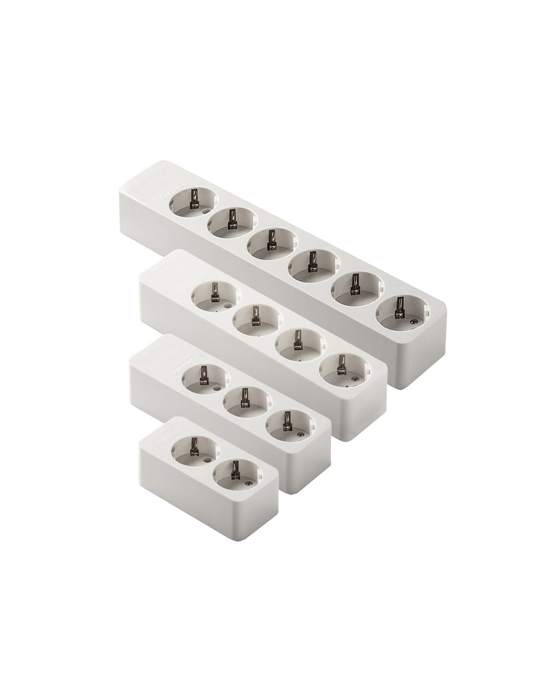 Base enchufe múltiple DUOLEC. T/T lateral. 16 A / 250 V. 2 tomas. Embalaje con 4 unidades.