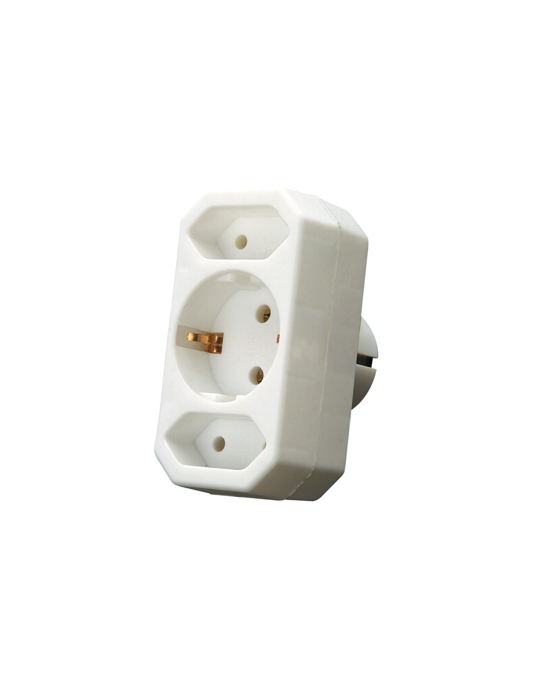Adaptador triple DUOLEC. Toma T/T lateral. 16 A. 250 V. 2 tomas 10 A. 250 V. Blanco.