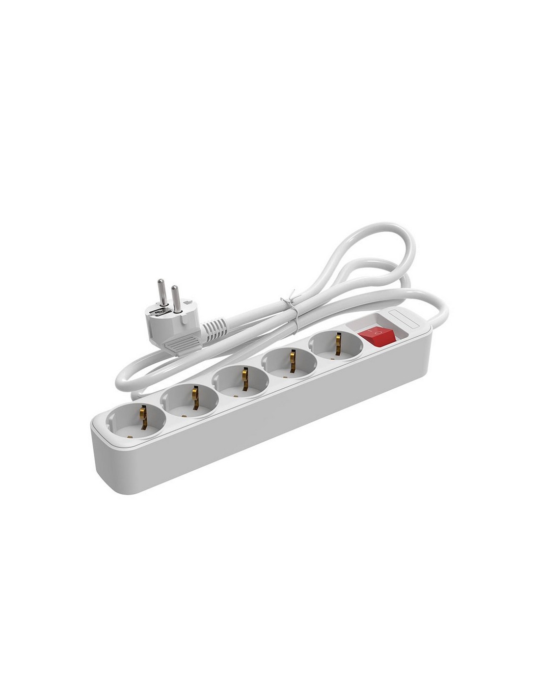 Base enchufe múltiple DUOLEC con cable T/T lateral. 16 A / 250 V. Con interruptor. 5 tomas. Blanco. Cable 3 m.