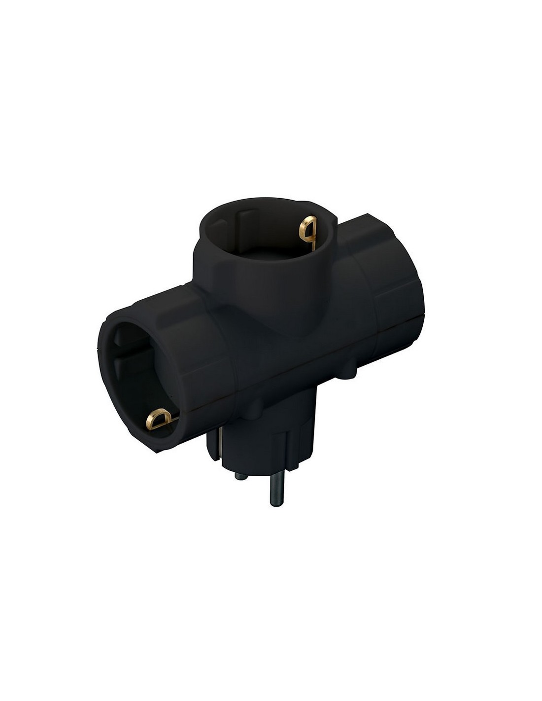 Adaptador triple DUOLEC. Portacontactos en cerámica reforzado. T/T. 10 A / 250 V. Negro.