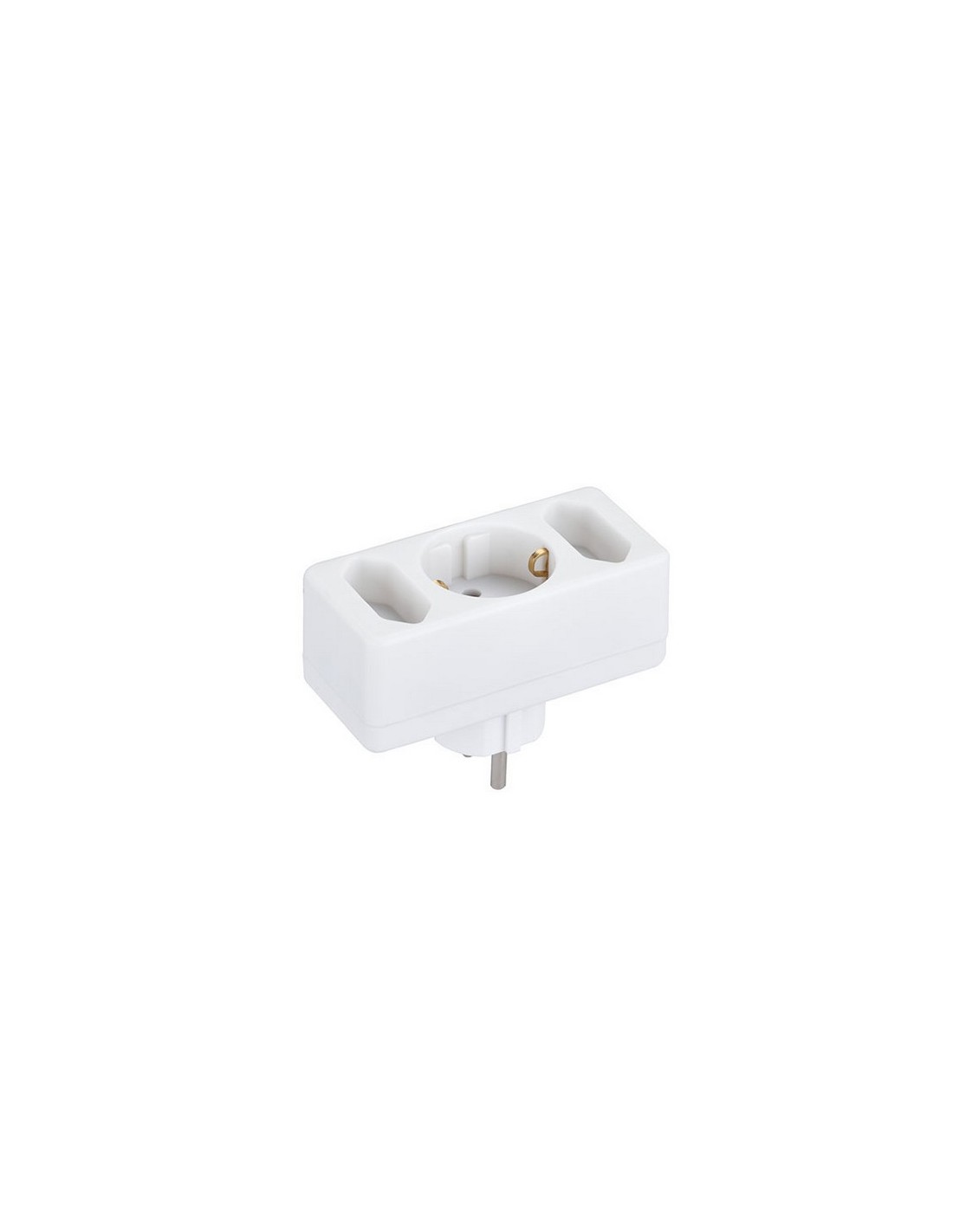 Adaptador frontal triple DUOLEC. Directo a pared. T/T lateral. 16 A./250 V. Máx. 3.500 W. Blanco.
