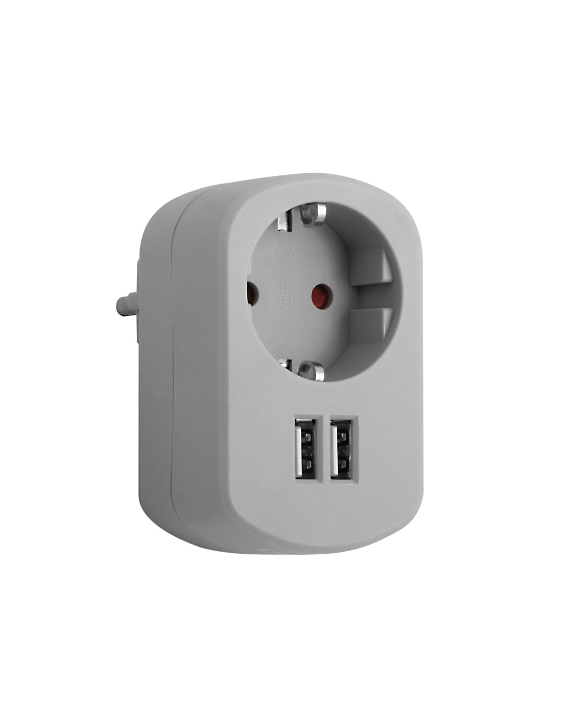 BASE ENCHUFE CON 2 TOMAS USB 2.1A GRIS
