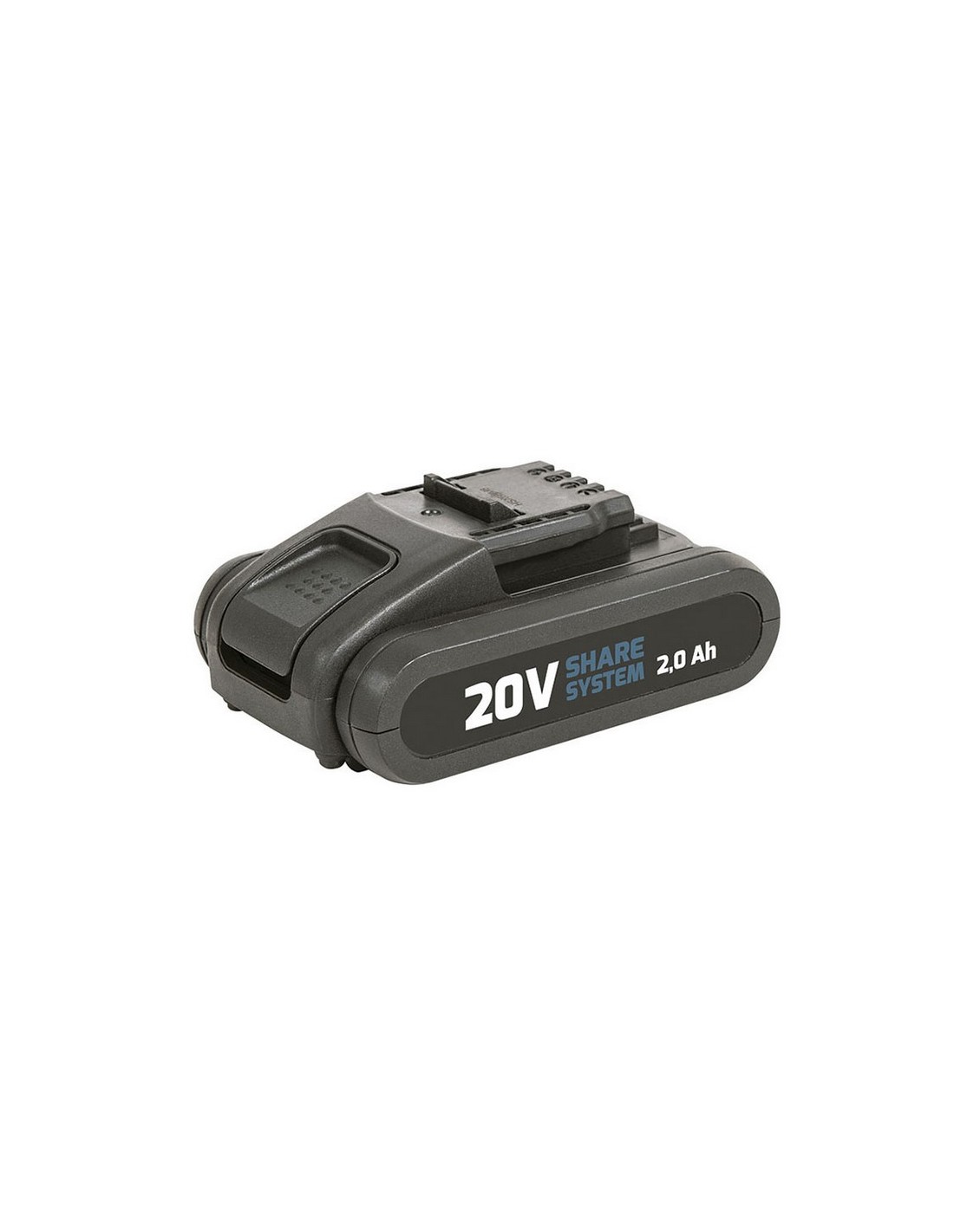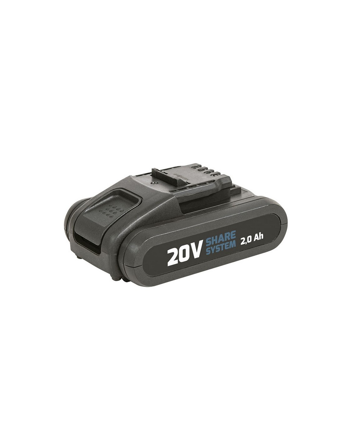 Taladro/atornillador percutor batería Share System RATIO XF20-2 Motor sin escobillas. Reversible. 2 velocidades. Portabrocas métalico automático 13 mm. Empuñadura bimaterial. Clip para cinturón. Maletín de transporte. 2 baterías 2.0 Ah y cargador rápido 48 min. incluidos. (Compatible serie Share System). Batería Share System 20 V-2.0 Ah.