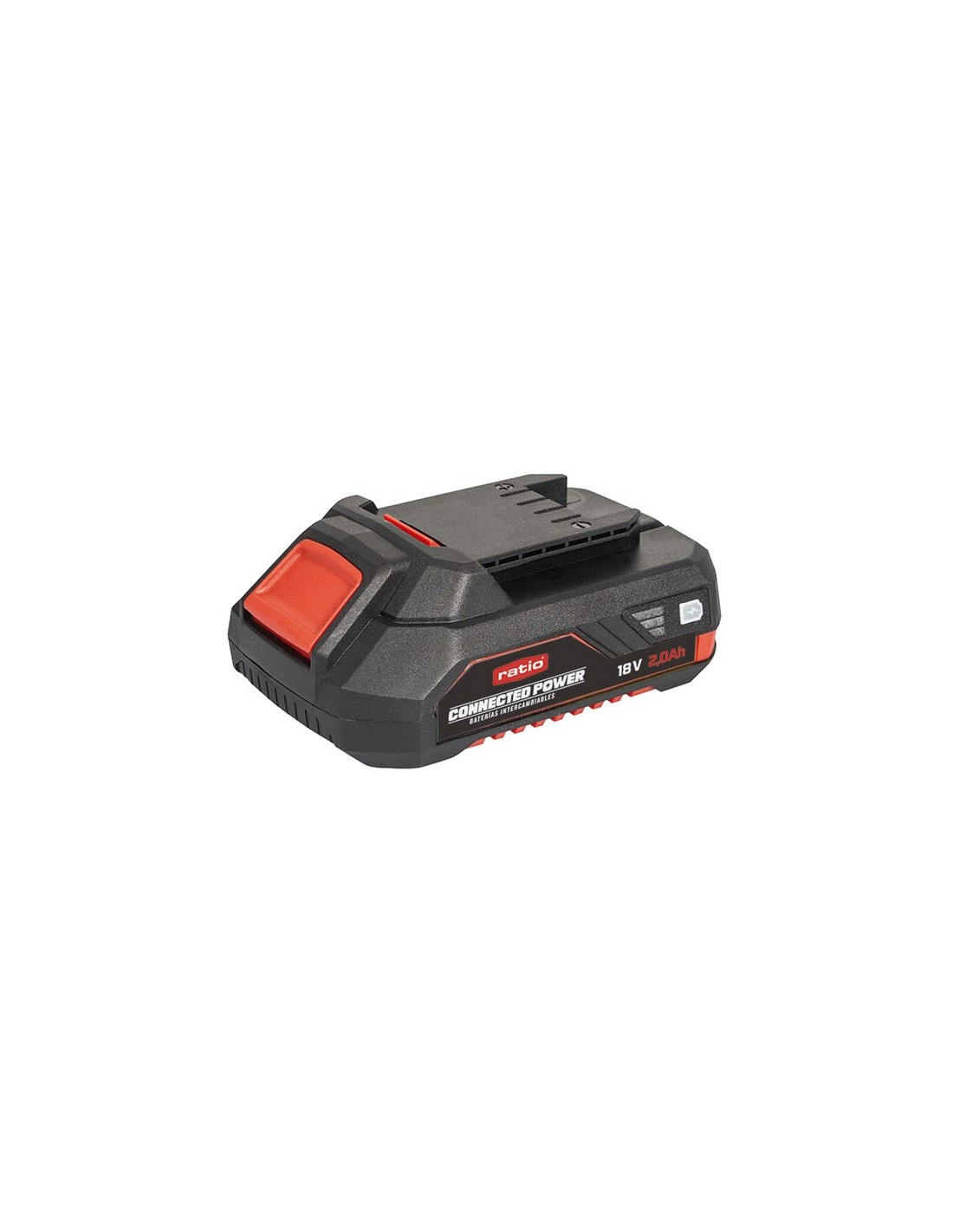 Batería Connected Power RATIO ProSeries 18 V-2.0 Ah Protección contra sobrecarga, descarga de la batería, sobrecalentamiento y cortocircuito. Una fila de 5 celdas de litio conectadas en serie. Batería Connected Power 18 V-2.0 Ah.