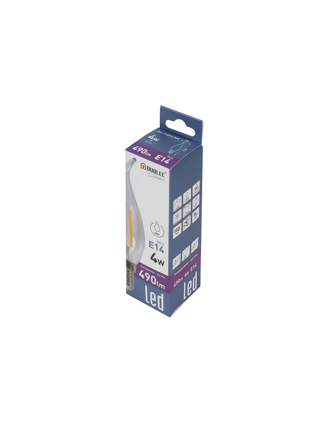 Bombilla vela decorativa E14 Led DUOLEC Classic transparente Rosca E14. 2 temperaturas de color: fría y cálida. Encendido instantáneo. Vida útil 25.000 horas. 4 W. 470 lm. 2700 K. ø 35x119 mm.