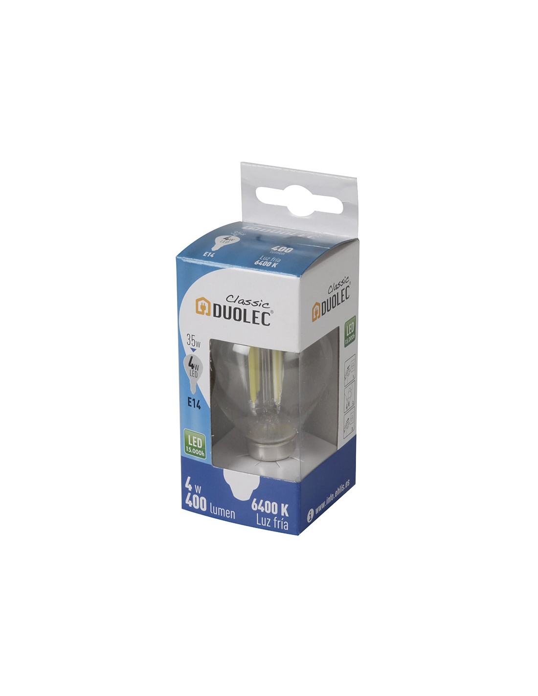 Miniglobo 4 W. 400 lm. E14. 6400K. 45x76 mm.