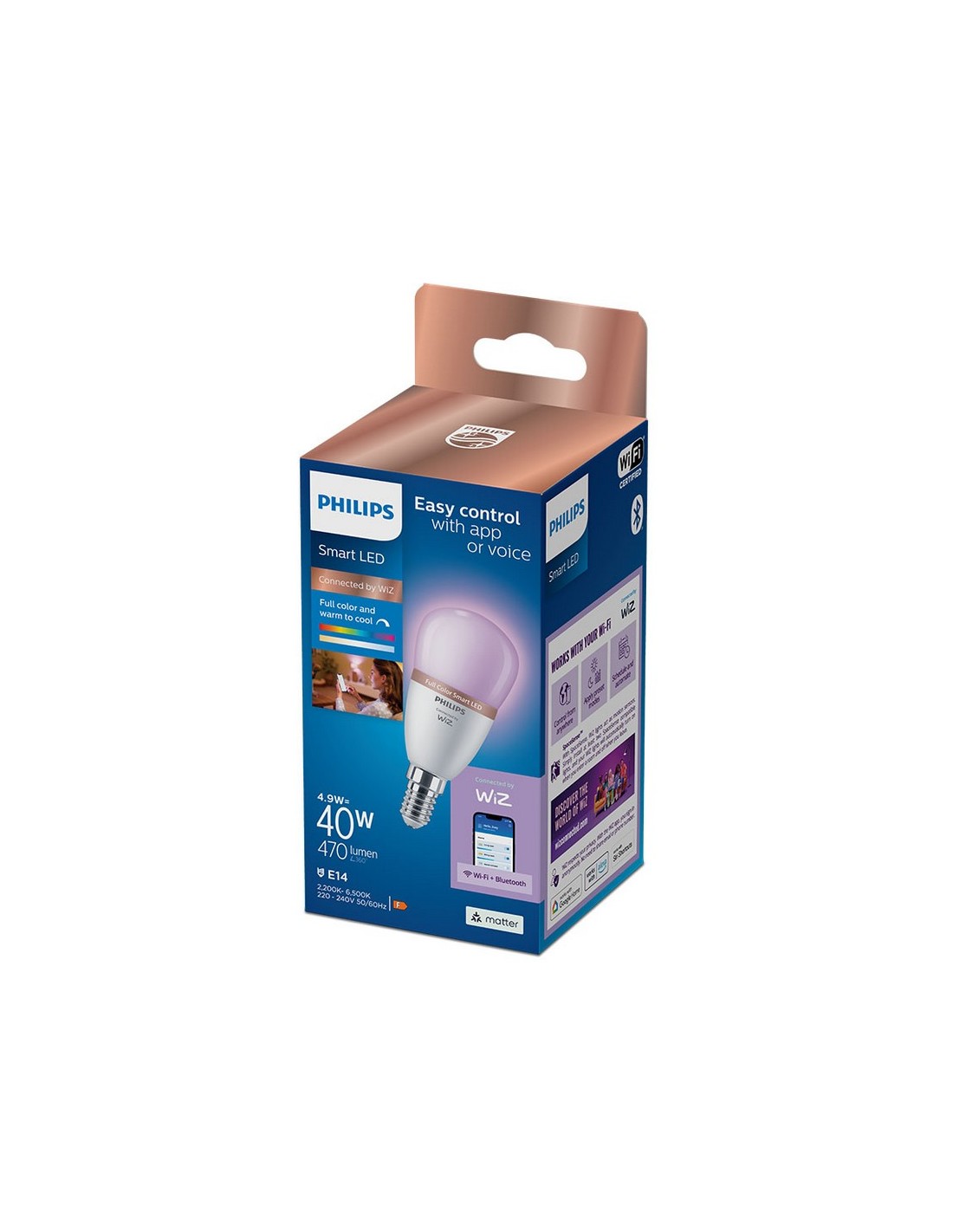 Bombilla inteligente PHILIP Wiz Smart Control inteligente desde cualquier parte con tu smartphone. Regulable de 2.200 a 6.500K. 4,9 W. 470 lm. E14.