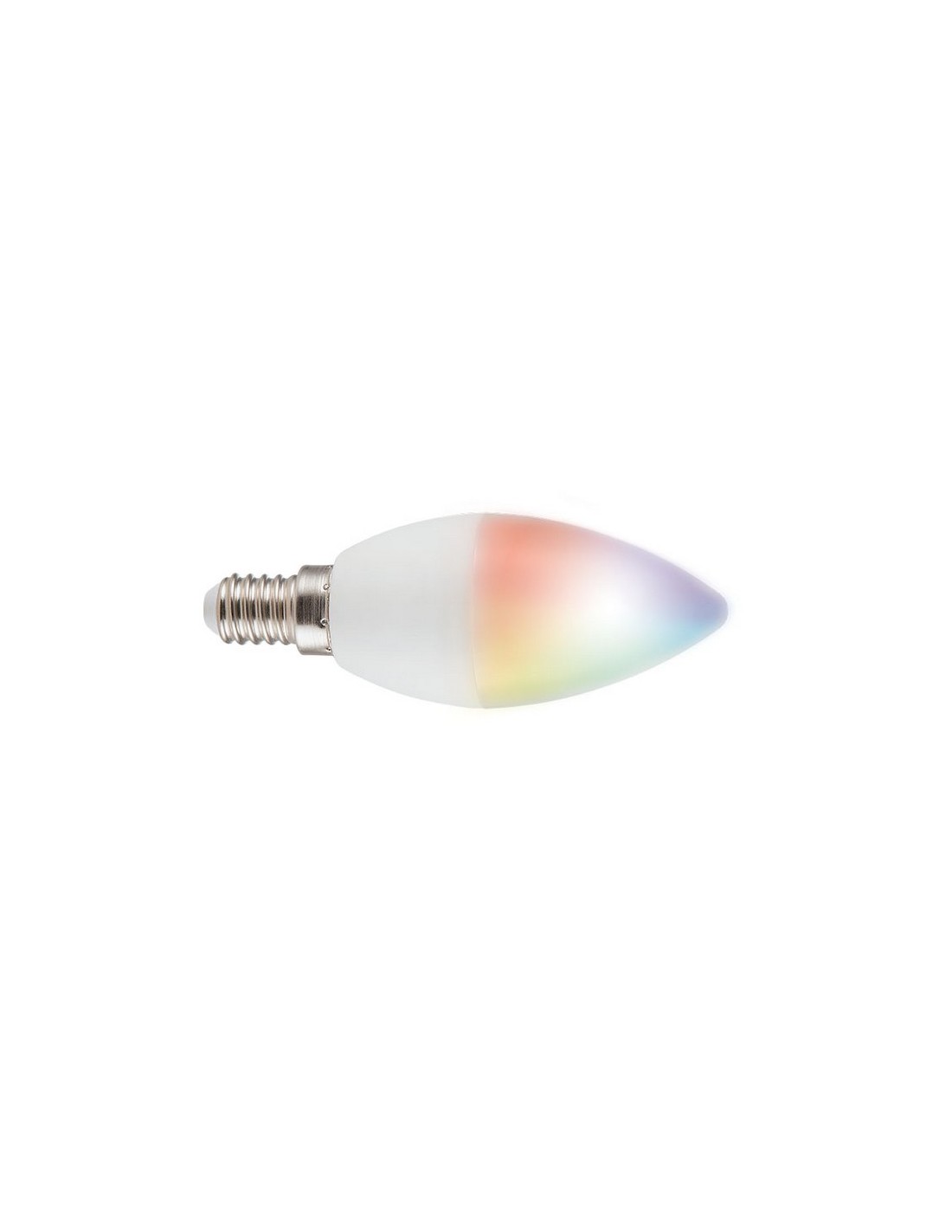 Bombilla Led wifi vela E14 ENERGEEKS CCT + RGB. Rosca E14. Bombillas inteligentes conectables desde cualquier parte con tu dispositivo móvil. Compatible con Alexa y Google Assistant. Programa y ahorra con la iluminación de tu estancia. Fácil instalación. Iluminación regulable de 2700K a 6500K y colores RGB. 5 W. 470 lm. ø 35x98 mm.