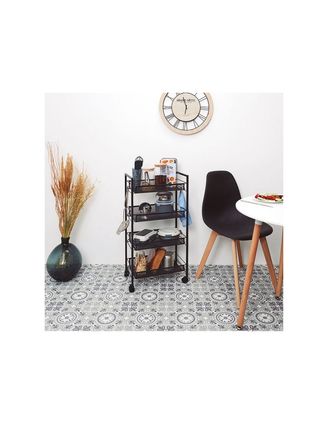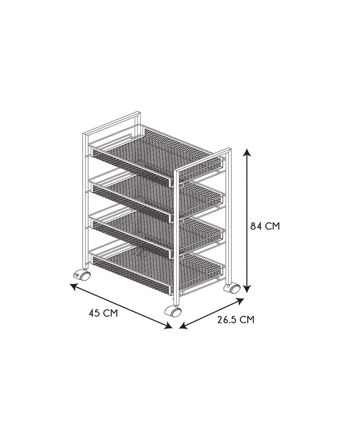 Carro camarera con ruedas Metal lacado negro. 45x26,5xh.84 cm.