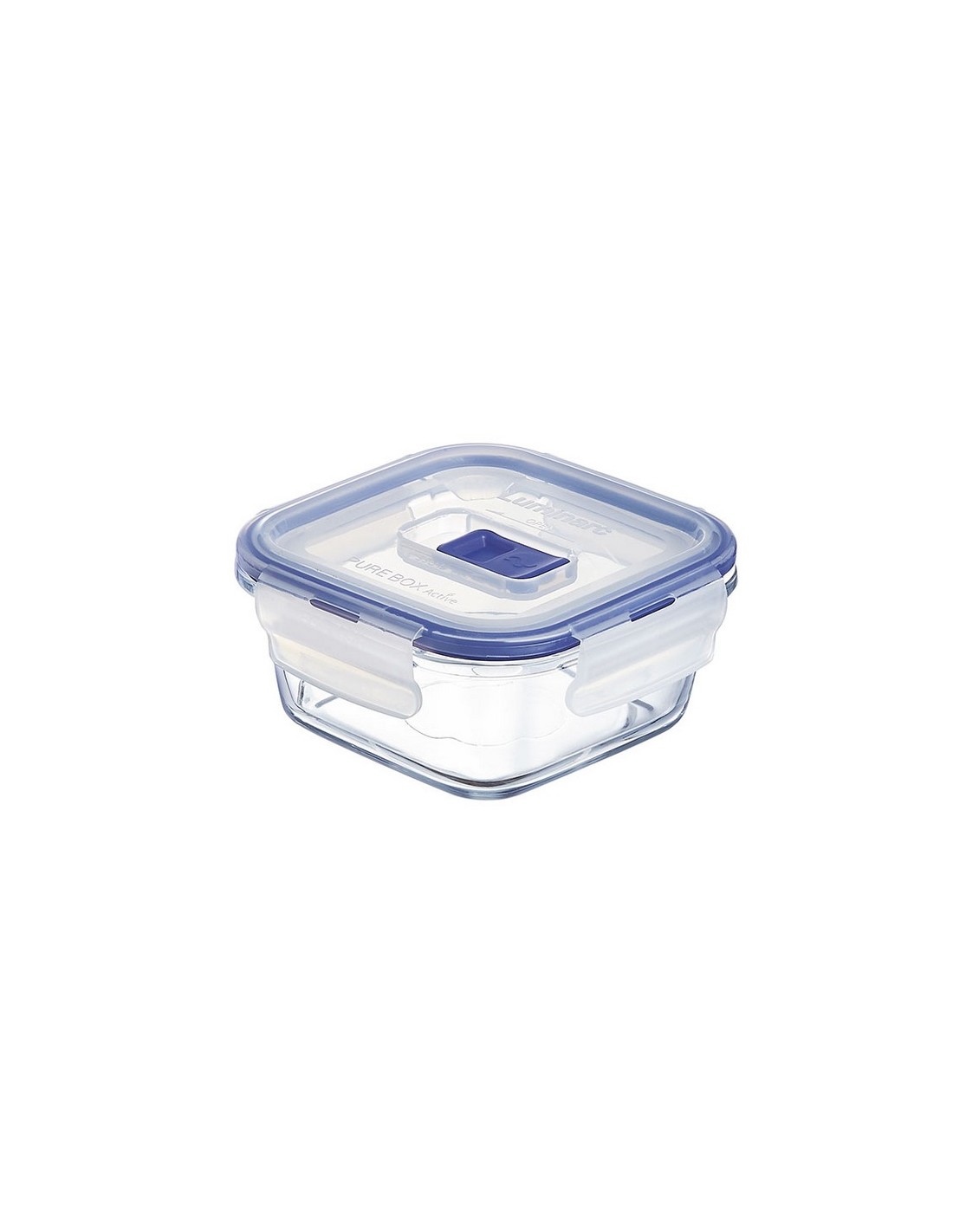 Fiambrera hermética LUMINARC Pure Box Active Cristal templado extrarresistente al calor, golpes e impactos. Tapa de polipropileno con junta de silicona y 4 cierres herméticos 100% con válvula. Libre BPA. Temperatura utilización +135ºC/-18ºC. Importante evitar el choque térmico. Aptas para frigo 380 ml. 120x120xh.62 mm.
