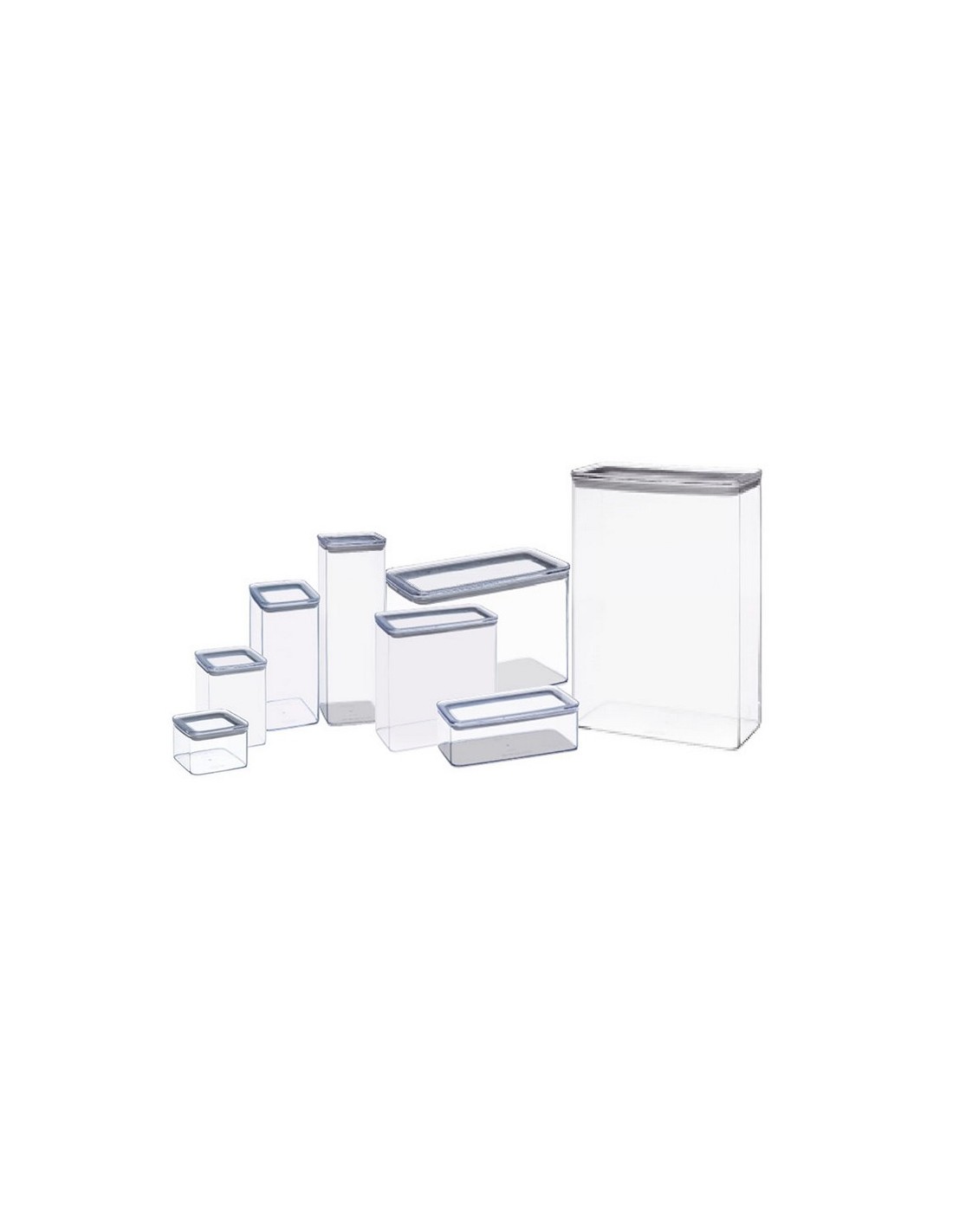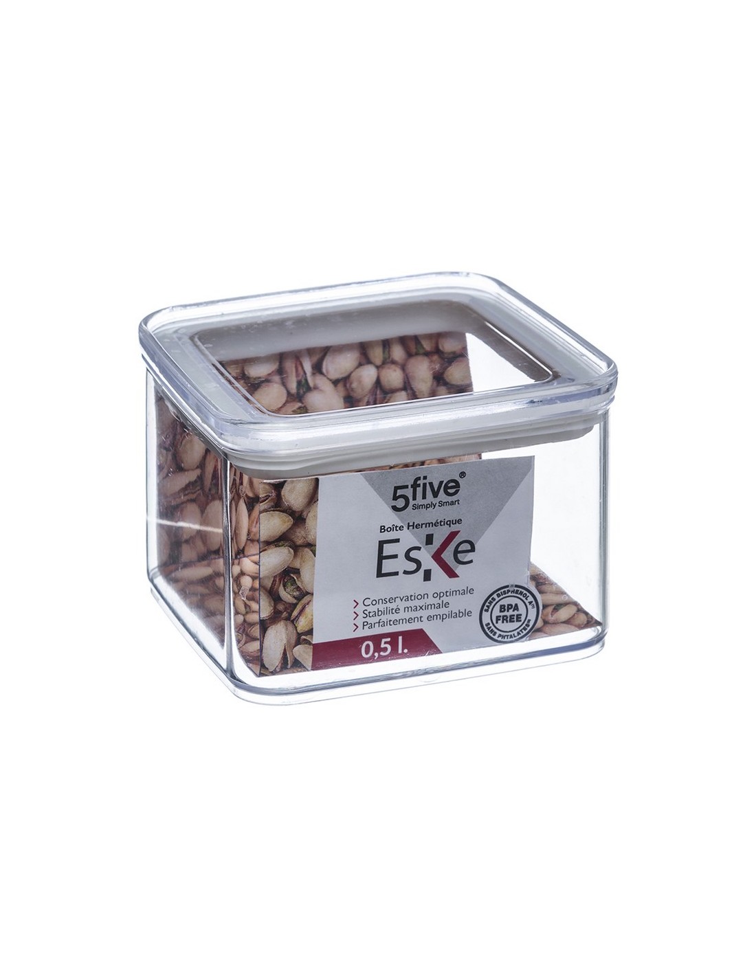Tarro hermético cocina Eske Poliestireno transparente apto para alimentos. Herméticos y perfectamente apilables. La tapa transparente permite ver el contenido aún cuando se guarden en un cajón. Libre BPA. 10,4x10,4xh.7 cm. 500 ml.