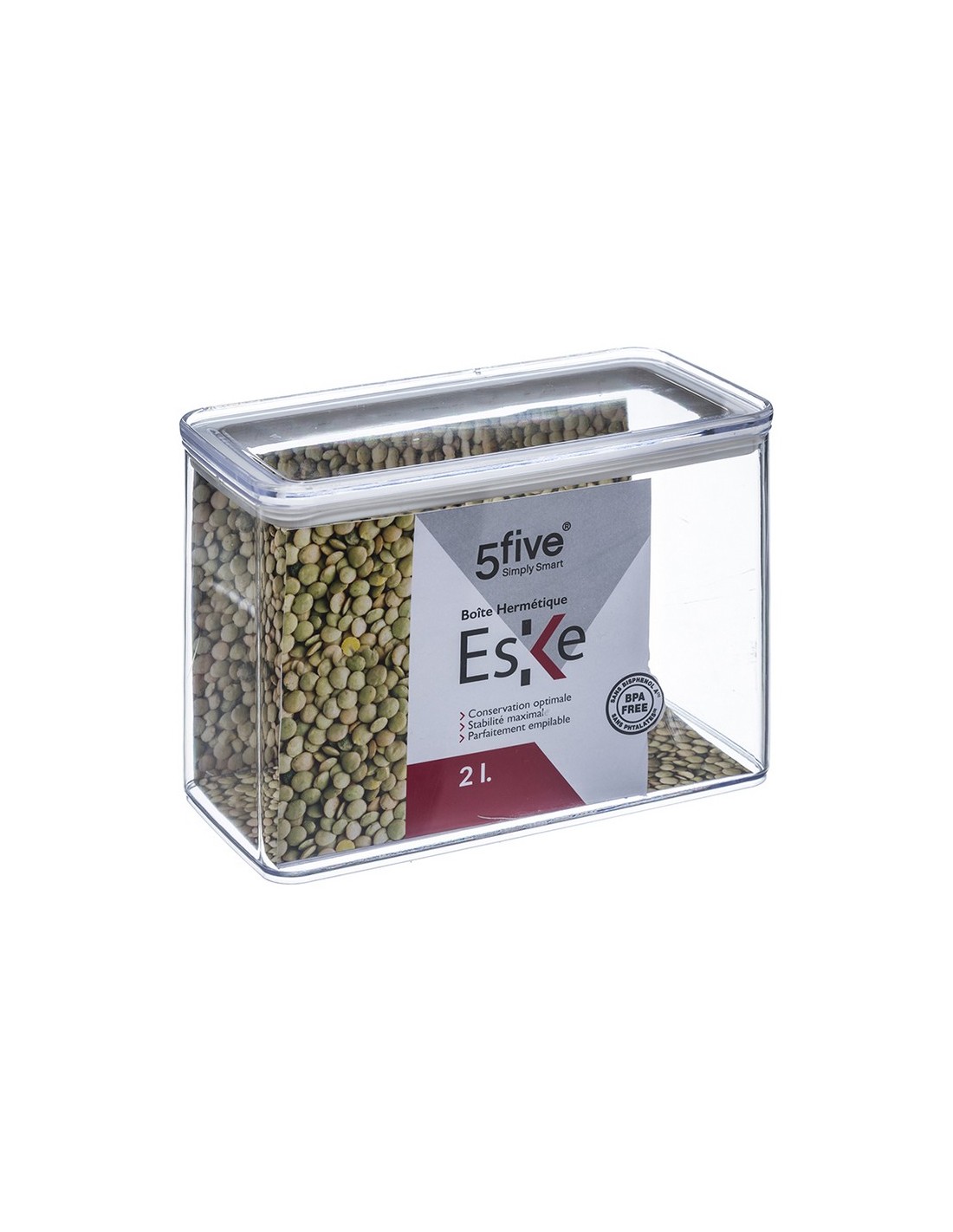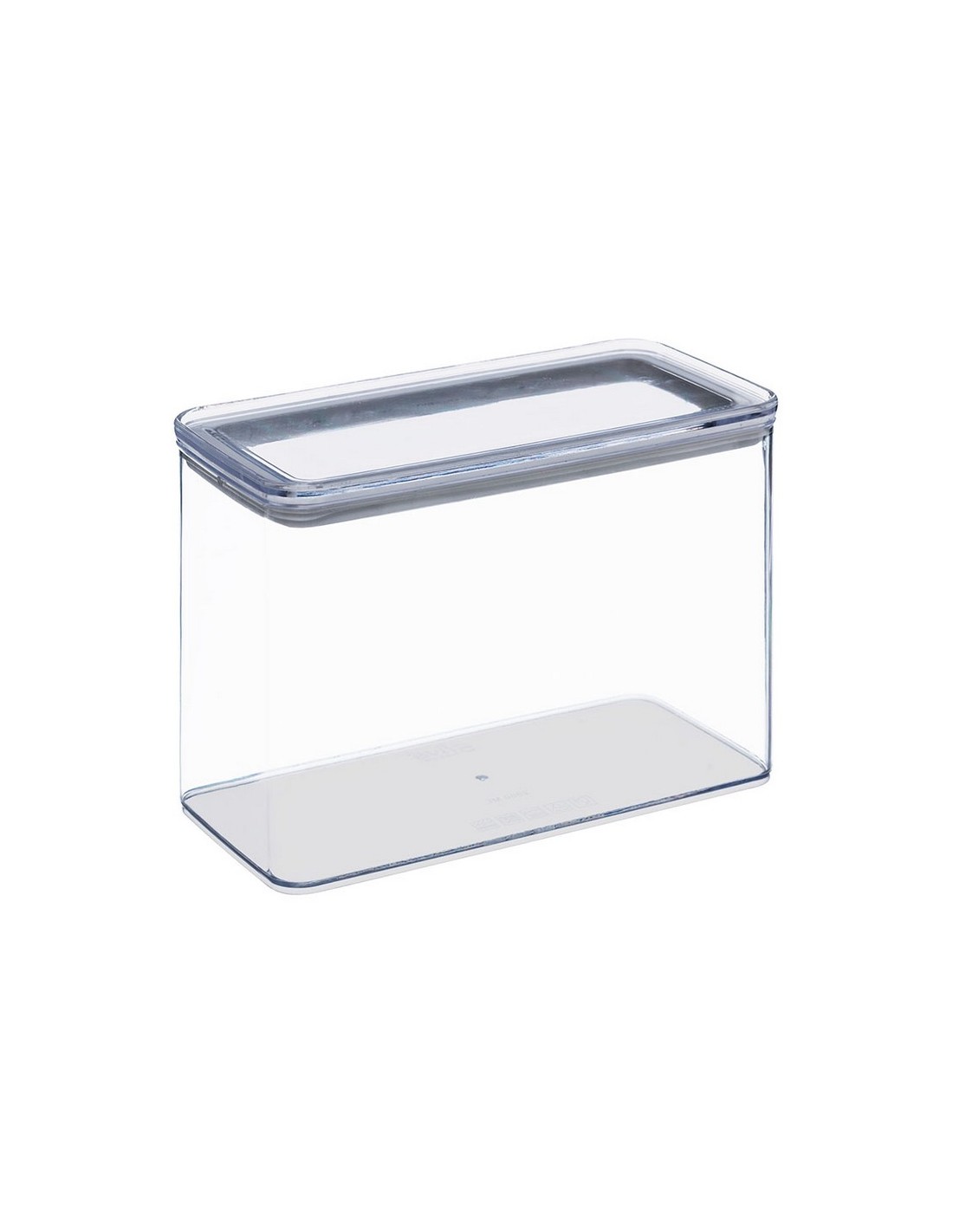 Tarro hermético cocina Eske Poliestireno transparente apto para alimentos. Herméticos y perfectamente apilables. La tapa transparente permite ver el contenido aún cuando se guarden en un cajón. Libre BPA. 20,3x10,3xh.13,8 cm. 2000 ml.