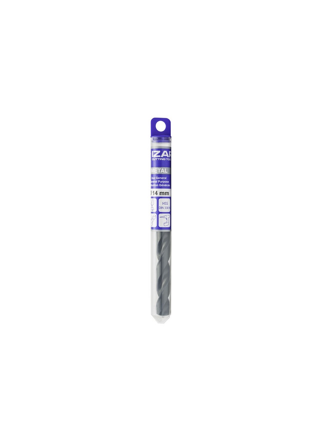 Broca metal HSS rebajada IZAR 1007 Acero rápido HSS DIN 338, geometría corte rectificada. Con mango reducido a dia. 12,7 mm. 10,00 mm.
