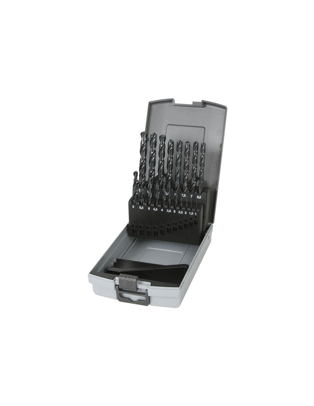 Broca metal HSS Profesional RATIO 1595 Acero rápido (HSS) DIN 338N, geometría corte rectificada. Calidad profesional. Estuche 19 brocas. ø 1-10x0,50 mm.