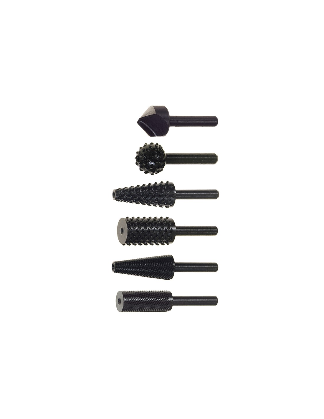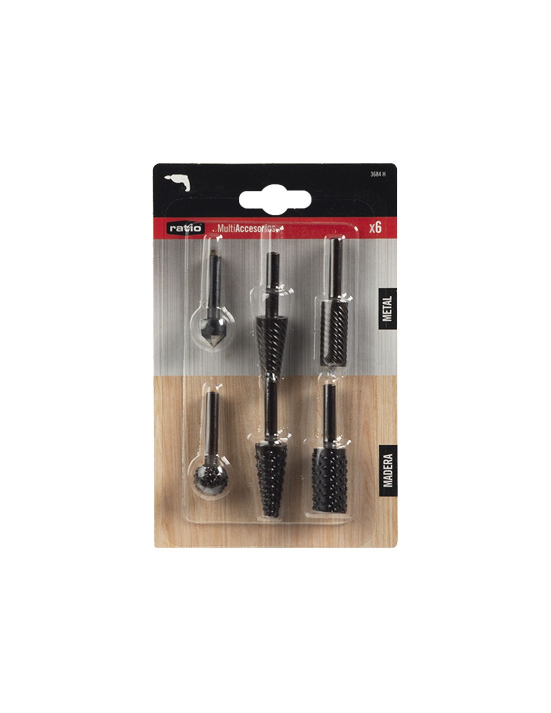 Fresa lima con vástago RATIO Juego 6 unidades. Vástago ø 6 mm. 3 para madera y 3 para metal.