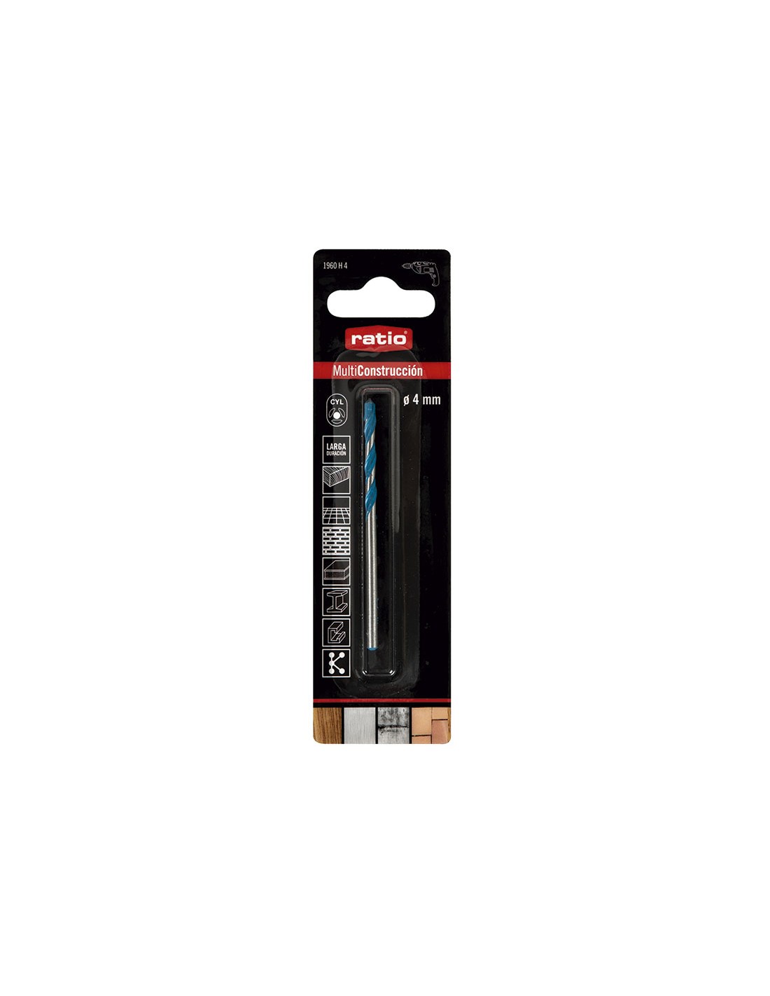 Broca MultiConstrucción RATIO Para taladrar todo tipo de materiales (madera, metal, cerámica blanda, hormigón...) o materiales multi-capa con o sin percusión. Punta centradora que proporciona una perforación constante y con buen guiado. Espirales con sección central reforzada.Tec ø 4x40x75 mm.
