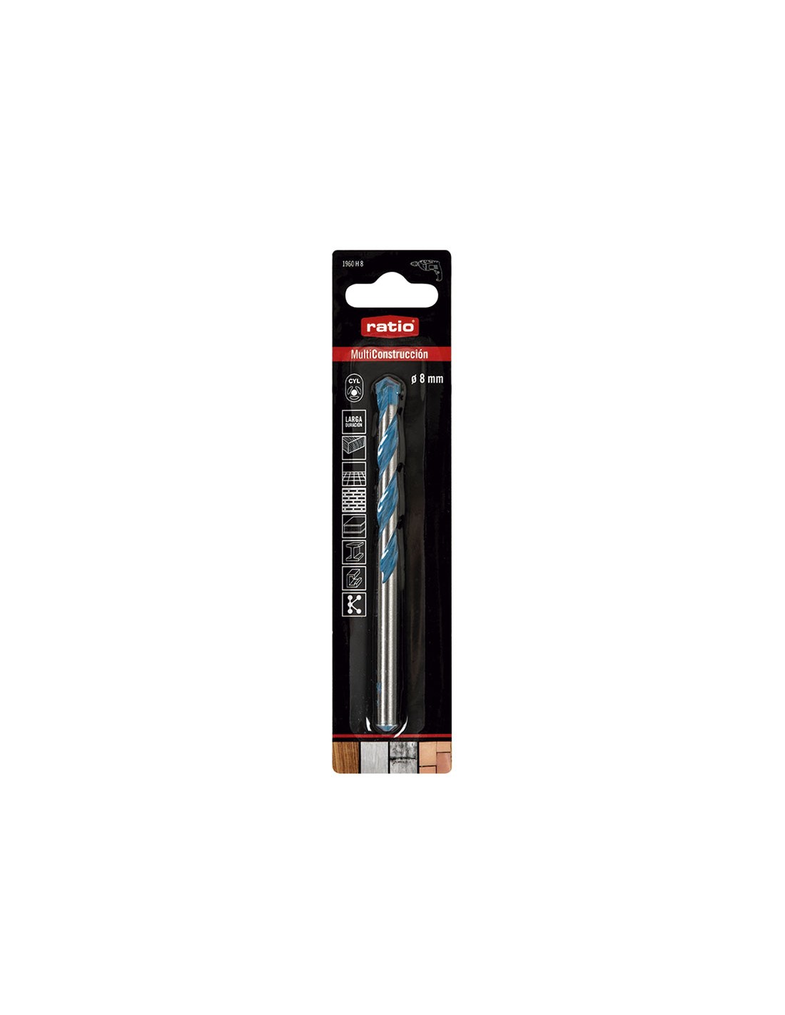 Broca MultiConstrucción RATIO Para taladrar todo tipo de materiales (madera, metal, cerámica blanda, hormigón...) o materiales multi-capa con o sin percusión. Punta centradora que proporciona una perforación constante y con buen guiado. Espirales con sección central reforzada.Tec ø 8x80x120 mm.