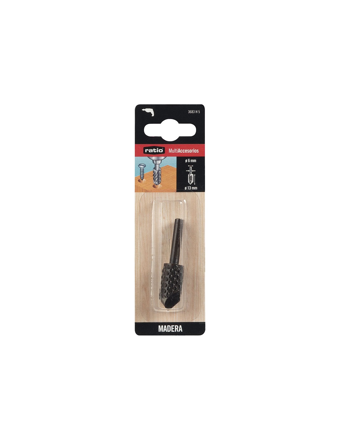 Fresa lima con vástago RATIO Para perfilar y avellanar madera. Vástago ø 6 mm. Cilíndrica para avellanar. ø 13x30 mm.