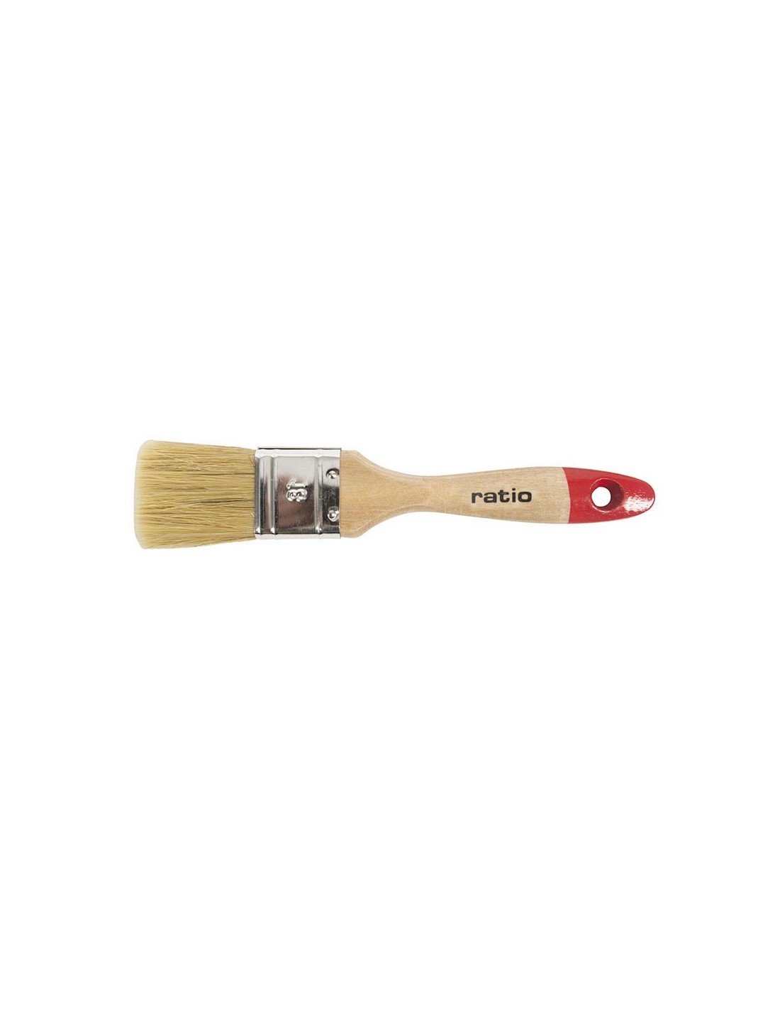 Paletina triple punta roja RATIO Para preparación de superficies (aplicar antióxidos o tapaporos, extender cola, etc). Para todo tipo de pinturas. Mango madera de haya encerada y barnizada. Virola metálica. Fibra 50% pura cerda + 50% PET. Nº 18.