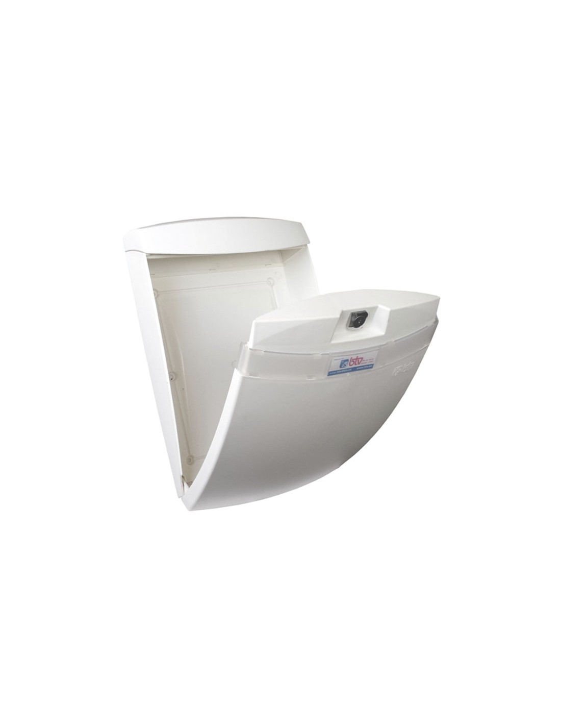 Buzón exterior BTV Galaxy. Plástico PVC. Preparado para bocacartas en la parte trasera. La puerta se detiene a 45º para alojar la correspondencia. 27x12xh.40 cm. Blanco.