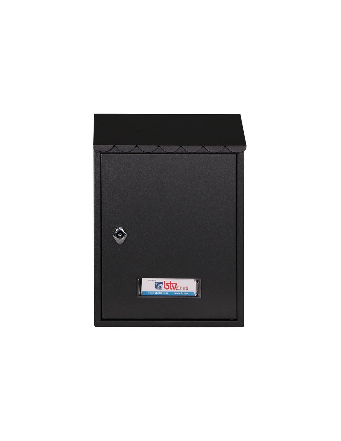 Buzón exterior BTV Laredo Acero galvanizado pintado. Disponible en color blanco y negro. Con tejadillo decorativo. Cerradura de rombo. Dimensiones: 21x6,8xh.30 cm. Negro.