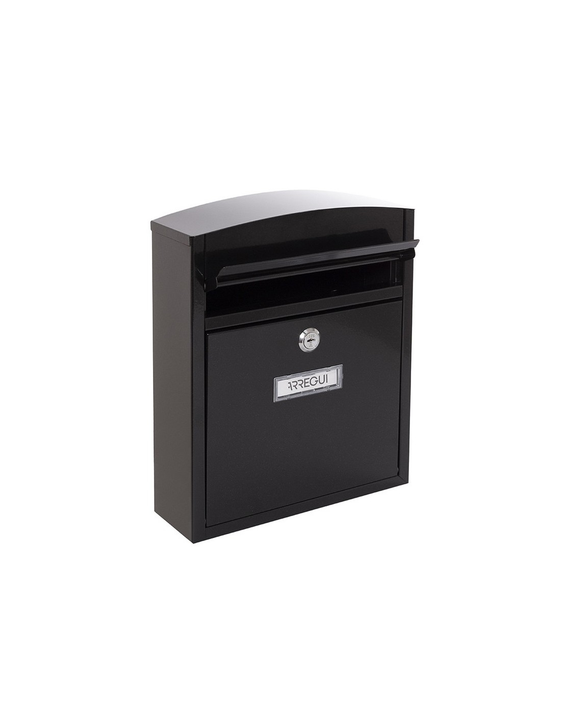 Buzón exterior/interior ARREGUI Compact Metálico. Apertura recogecartas delantera. Permite su colocación en agrupación o individualmente. 240x95xh.285 mm. Capacidad para DIN A5. Medida boca: 175x20 mm. Negro.
