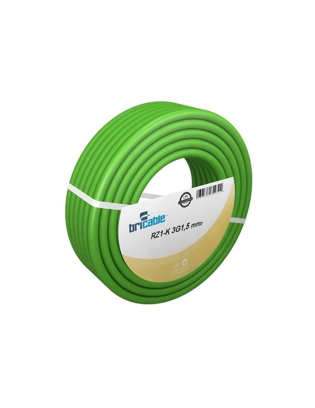 Cable eléctrico manguera BRICABLE Rollo. Verde. Norma RZ1-K Libre de halógenos UNE 21123. 3 x 1,5 mm. 25 m.