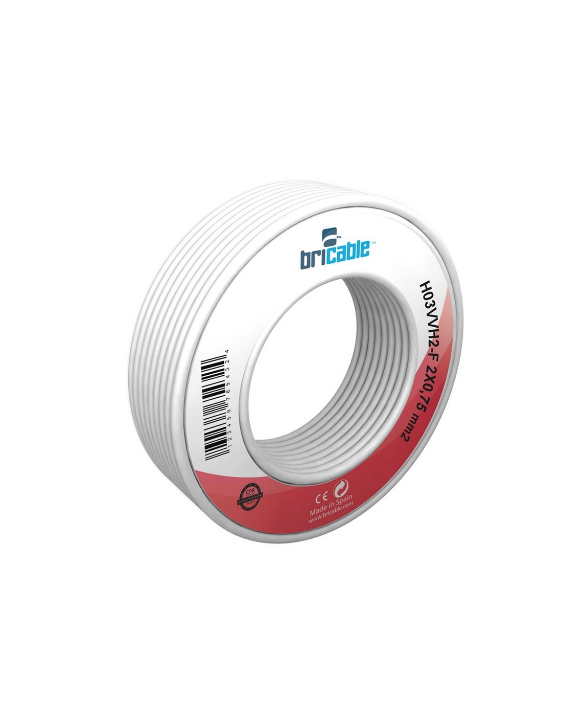 Cable eléctrico manguera plana BRICABLE Flexible. Minirollo. Norma H03VVH2-F. 2x0,75 mm. 10 m. Blanco.