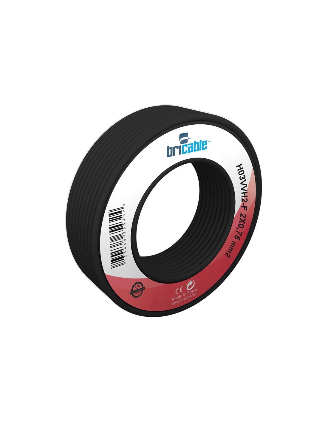 Cable eléctrico manguera plana BRICABLE Flexible. Minirollo. Norma H03VVH2-F. 2x0,75 mm. 5 m. Negro.