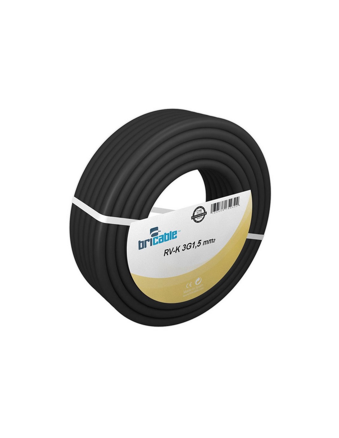 Cable eléctrico manguera BRICABLE Flexible. Rollo. Negro. Norma RV-K UNE 21123-2. 3x1,5 mm. 1 kV. 25 m.