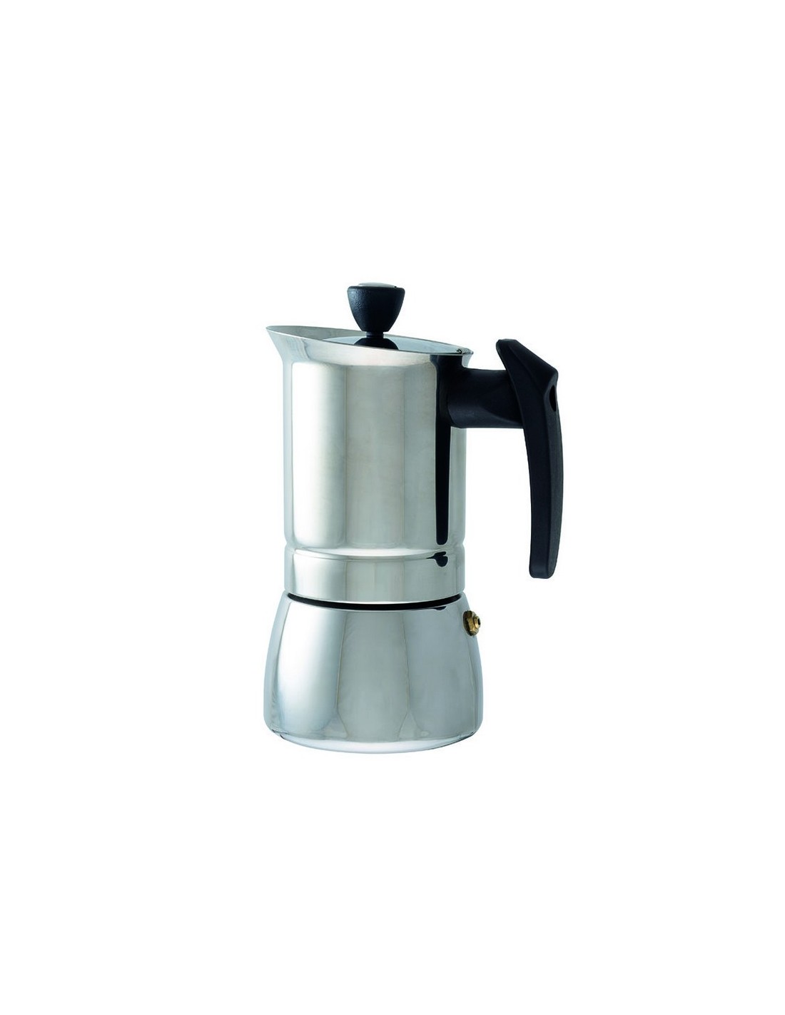 Cafetera acero inox HABITEX Steel induction. Pomo y asa de baquelita. Para todo tipo de cocinas, especial inducción. 9 tazas.