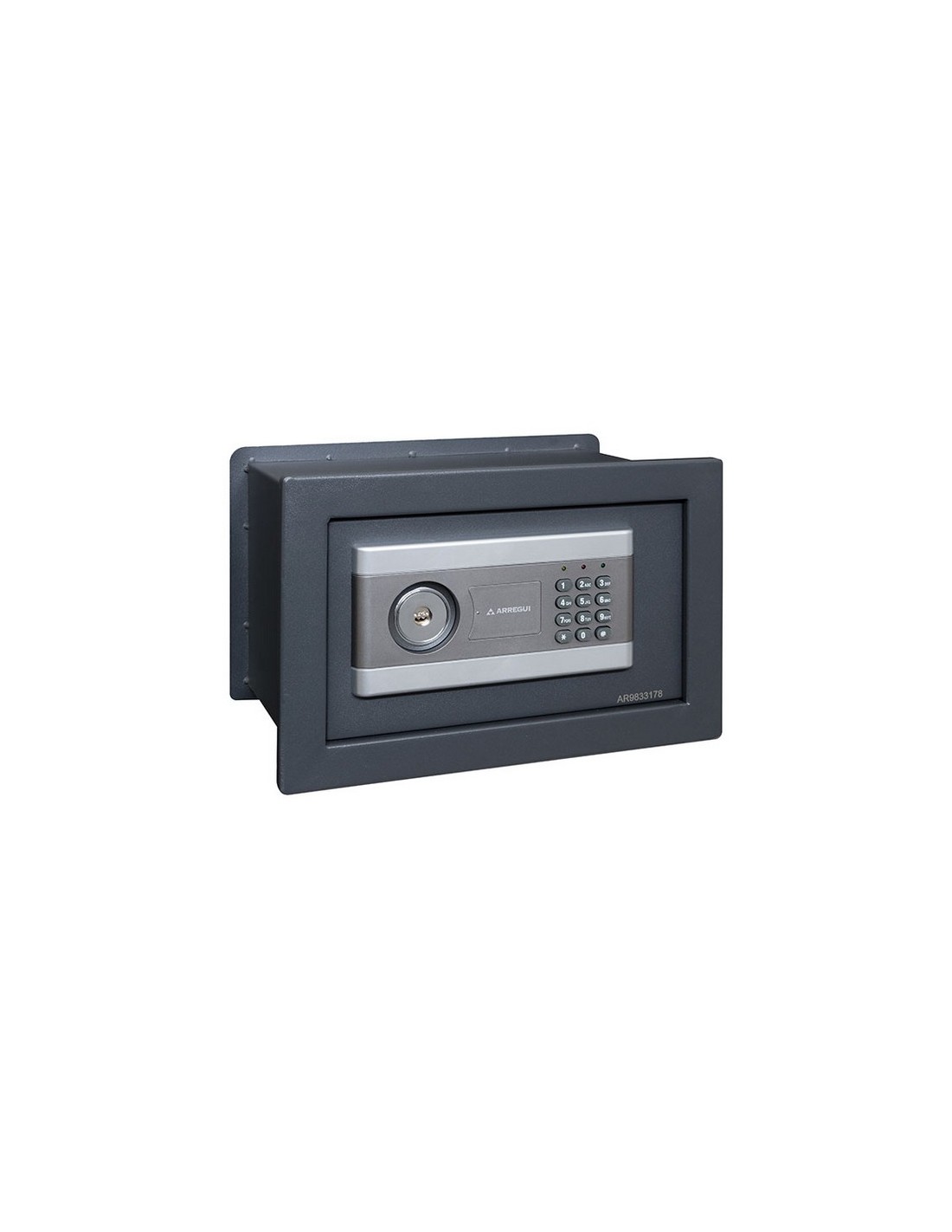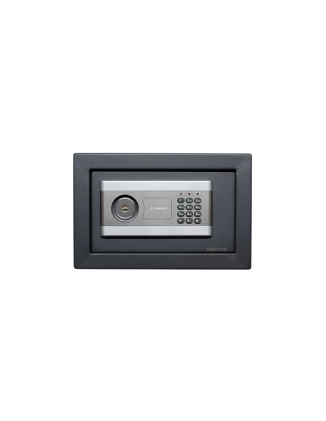 Caja seguridad electrónica ARREGUI New Stylo 2 códigos de usuario para mayor control. Frente acero 4 mm y cuerpo antiganzúa 2 mm. . Apertura mediante llave y código numérico. Llave de emergencia. 2 bulones ø 16 mm.. Empotrar. 32x20xh.21 cm.