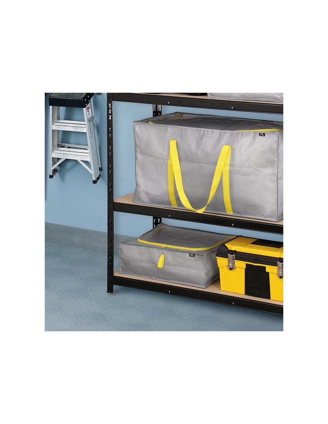 Funda multiuso DOMO serie Taurus Ideal garajes, sótanos y trasteros. Tela resistente a prueba de rozaduras resistente al agua. Protección contra la suciedad y la humedad. Gran capacidad de carga. Color gris/amarillo. 180 l. 90x45xh.45 cm.