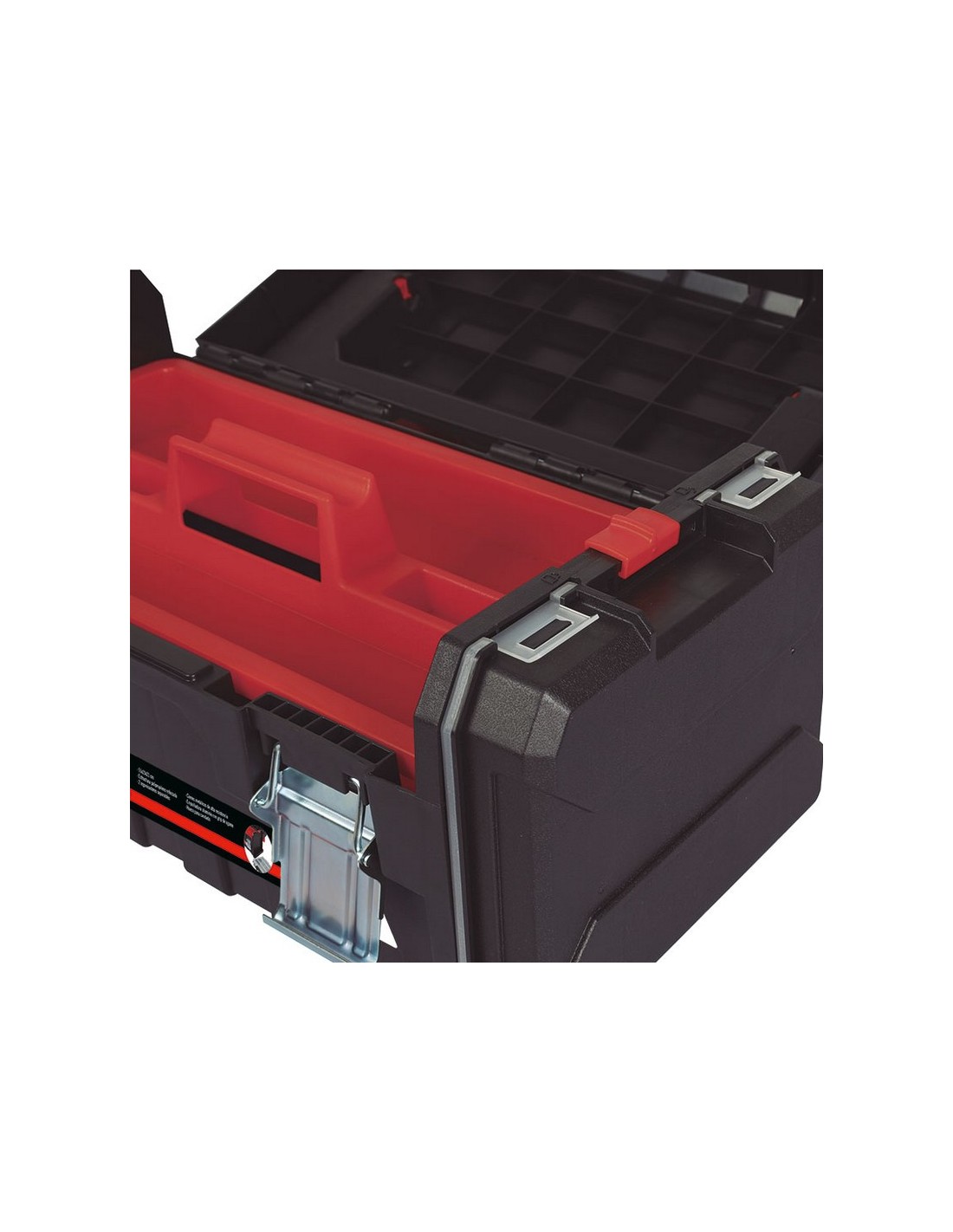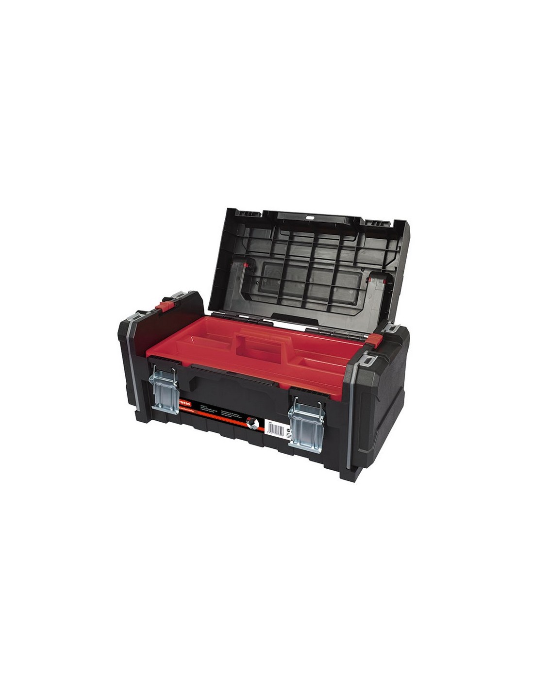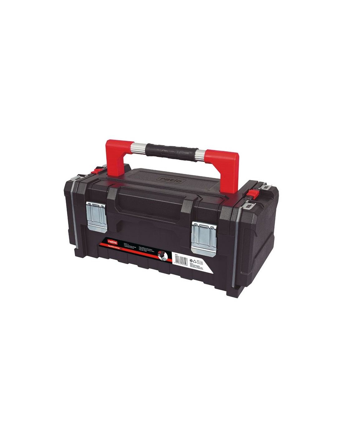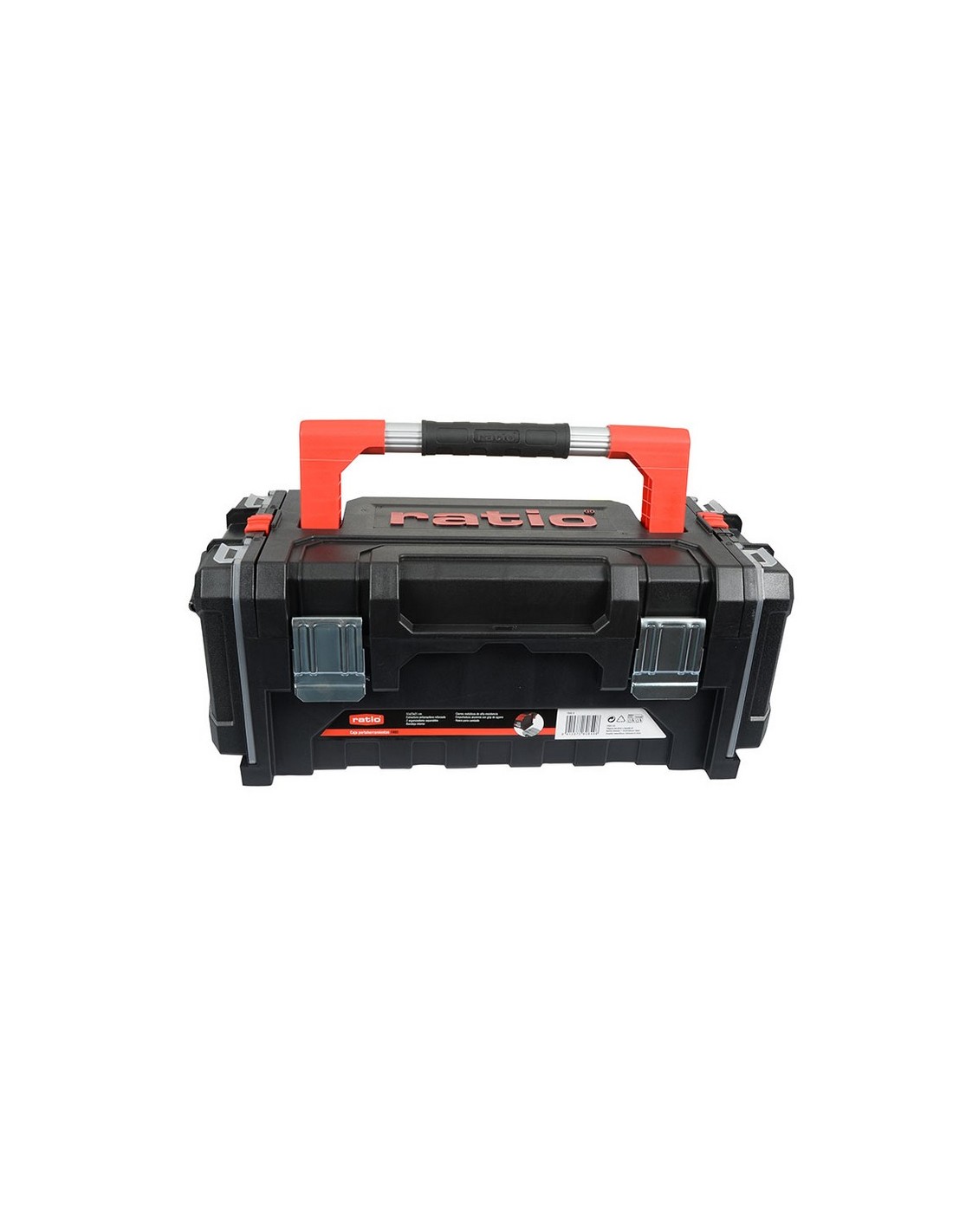 Caja herramientas RATIO 7800 Polipropileno. Asa aluminio Comfort-Grip. Doble cierre metálico con hueco para candado. Incluye 1 bandeja interior, 2 estuches organizadores en sus laterales extraíbles. 2 organizadores separables. Con cierres metálicos, empuñadura de aluminio con grip de agarre. Dimensiones: 51x23xh.21 cm.