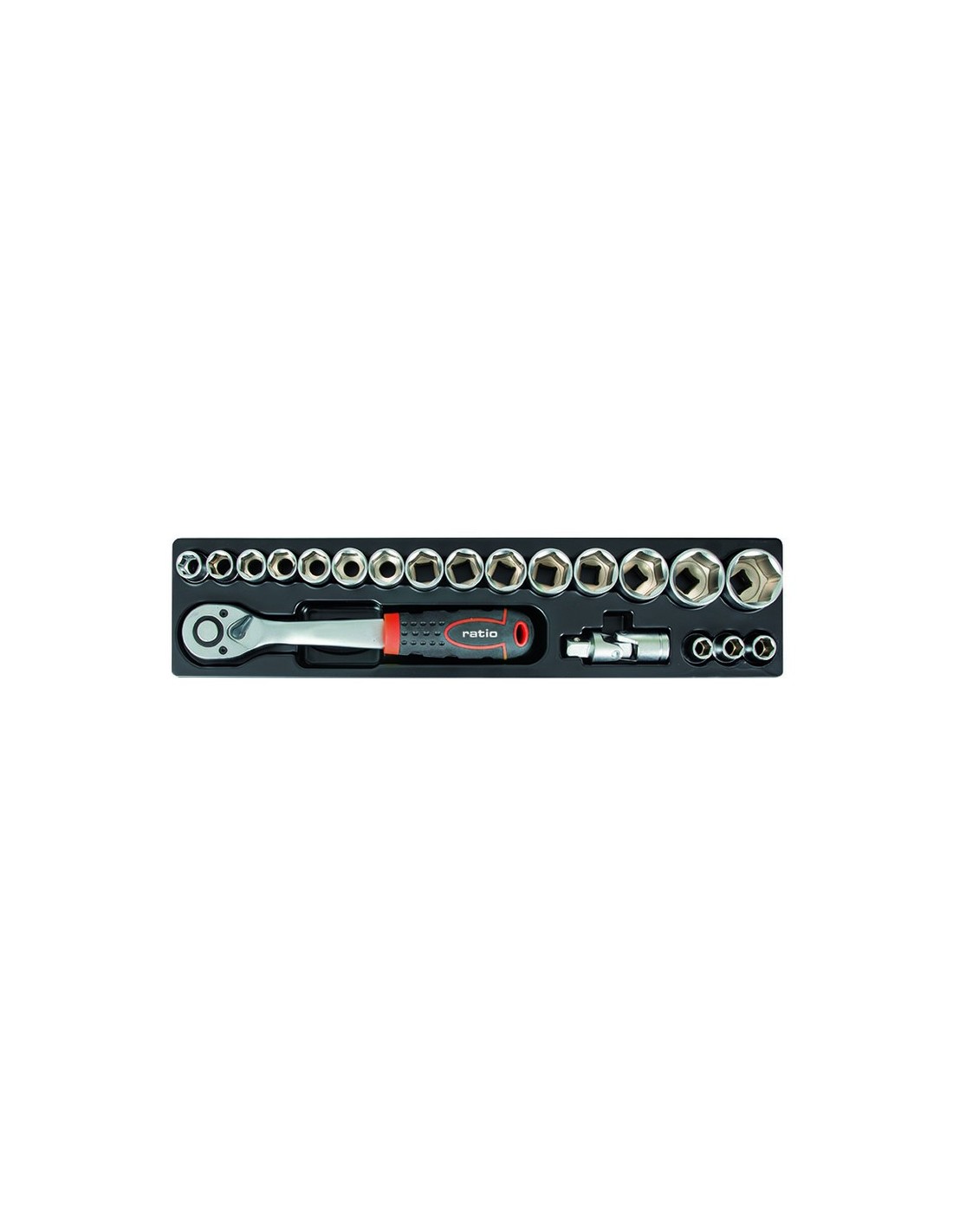 Caja herramientas metálica 63 herramientas RATIO 6978 Caja metálica cantilever con 5 compartimentos y con 63 herramientas acero cromo-vanadio 1/2". 51x25xh.39 cm.