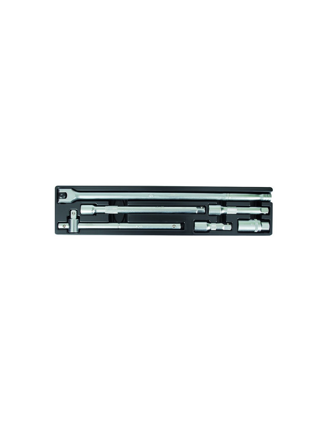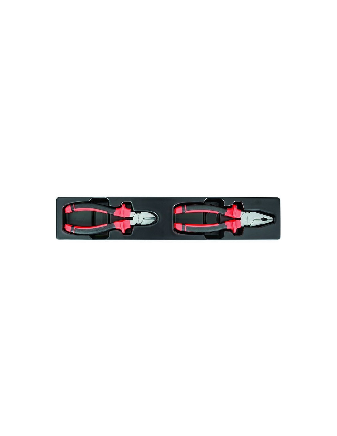 Composición: Carraca y llaves de vaso de 1/2\". Adaptadores para carraca 1/2\". Llaves fijas combinadas. Destornilladores. Alicates. Llaves Allen acodadas, mordaza y pico loro.